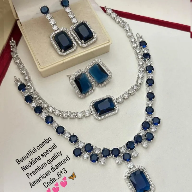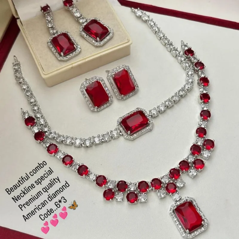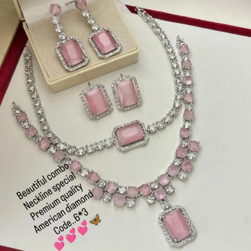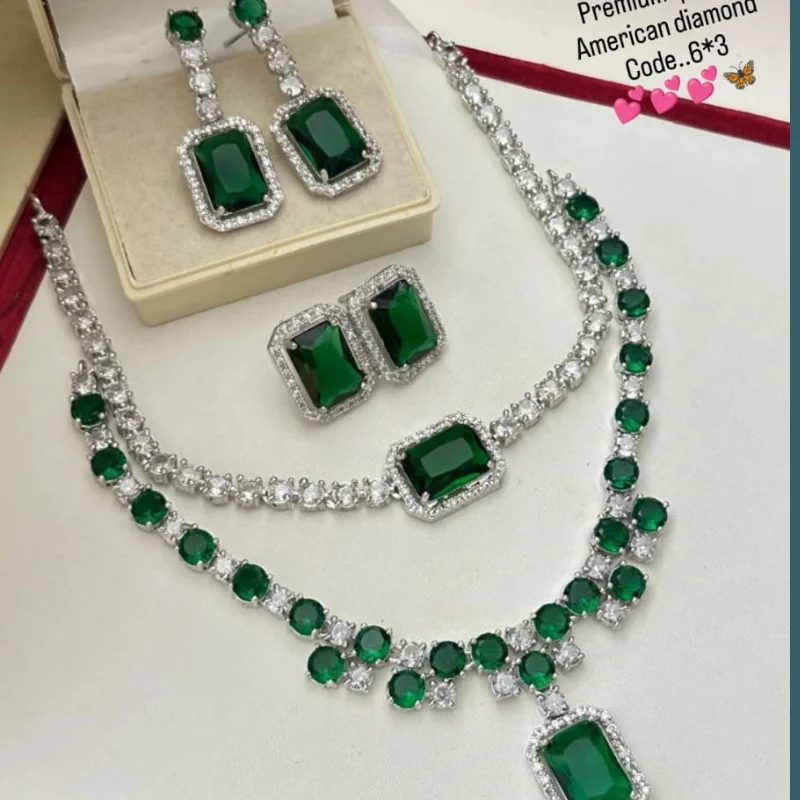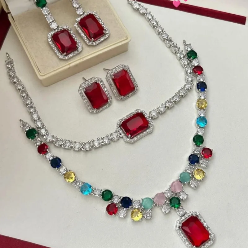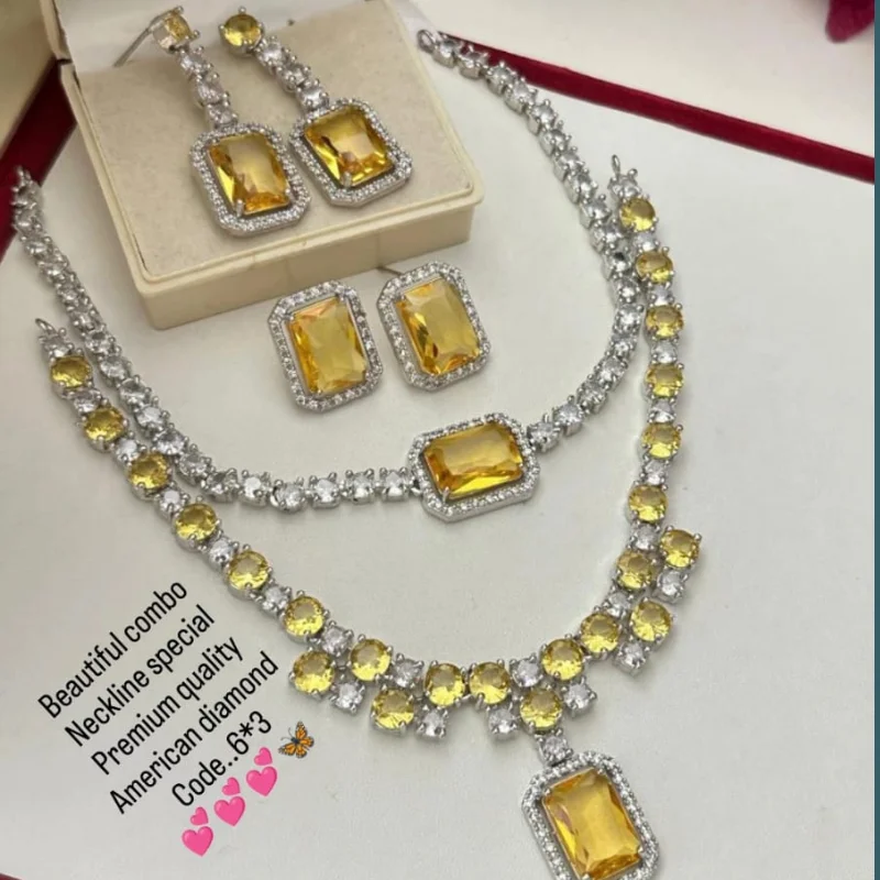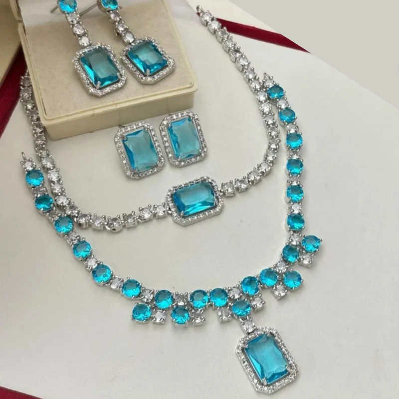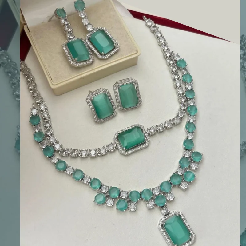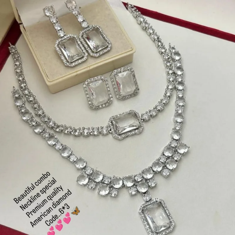 Luxury Silver-Tone American Diamond Jewelry Set