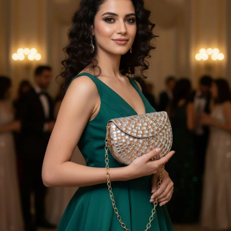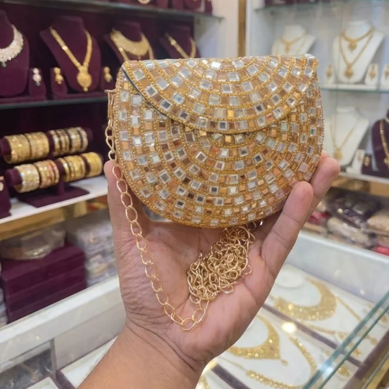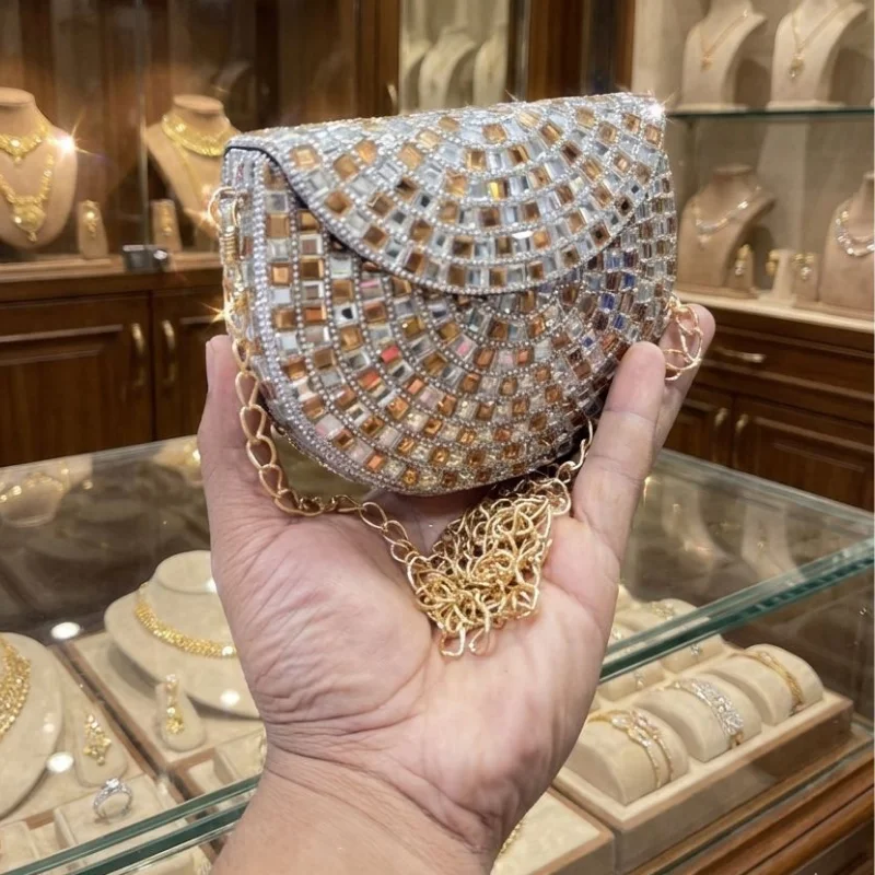 Luxury Two-Tone Crystal Mosaic Half-Moon Clutch