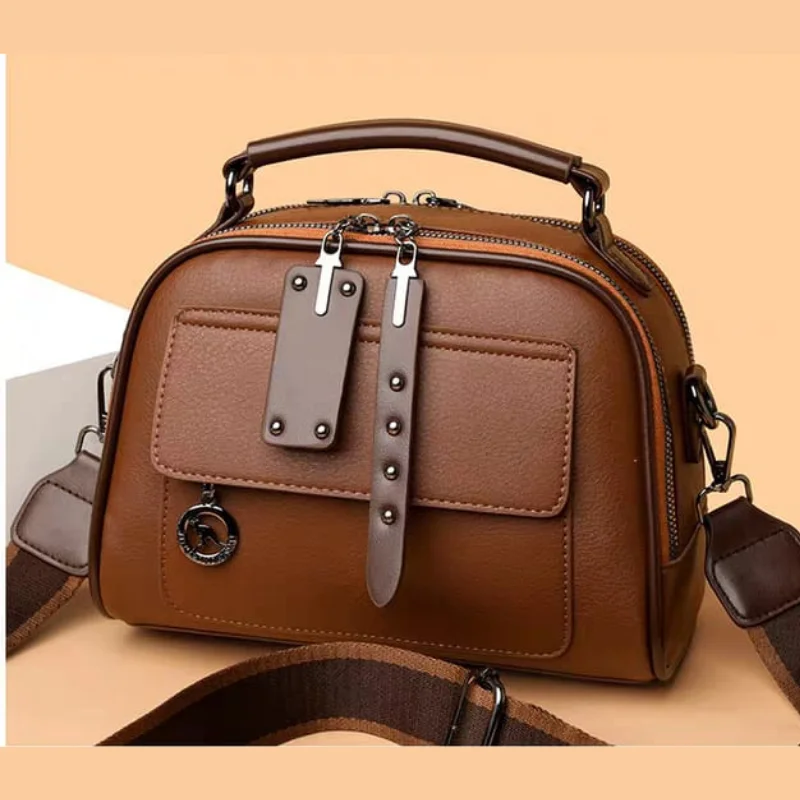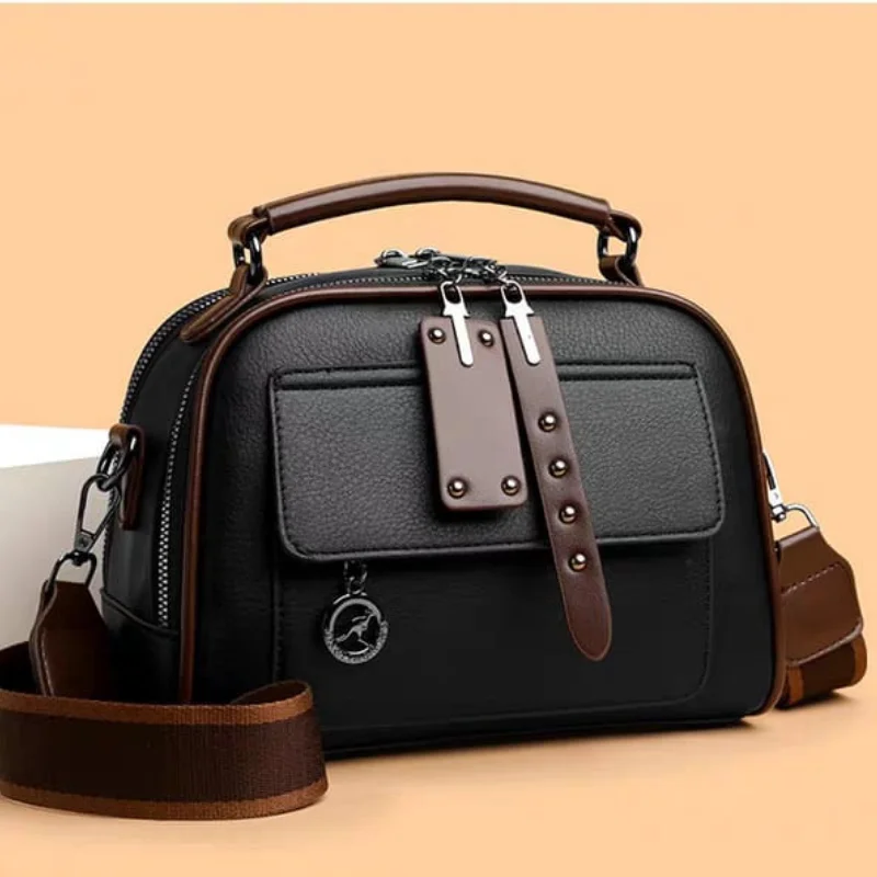 Luxury Women’s Dual-Zipper Handbag with Kangaroo Charm