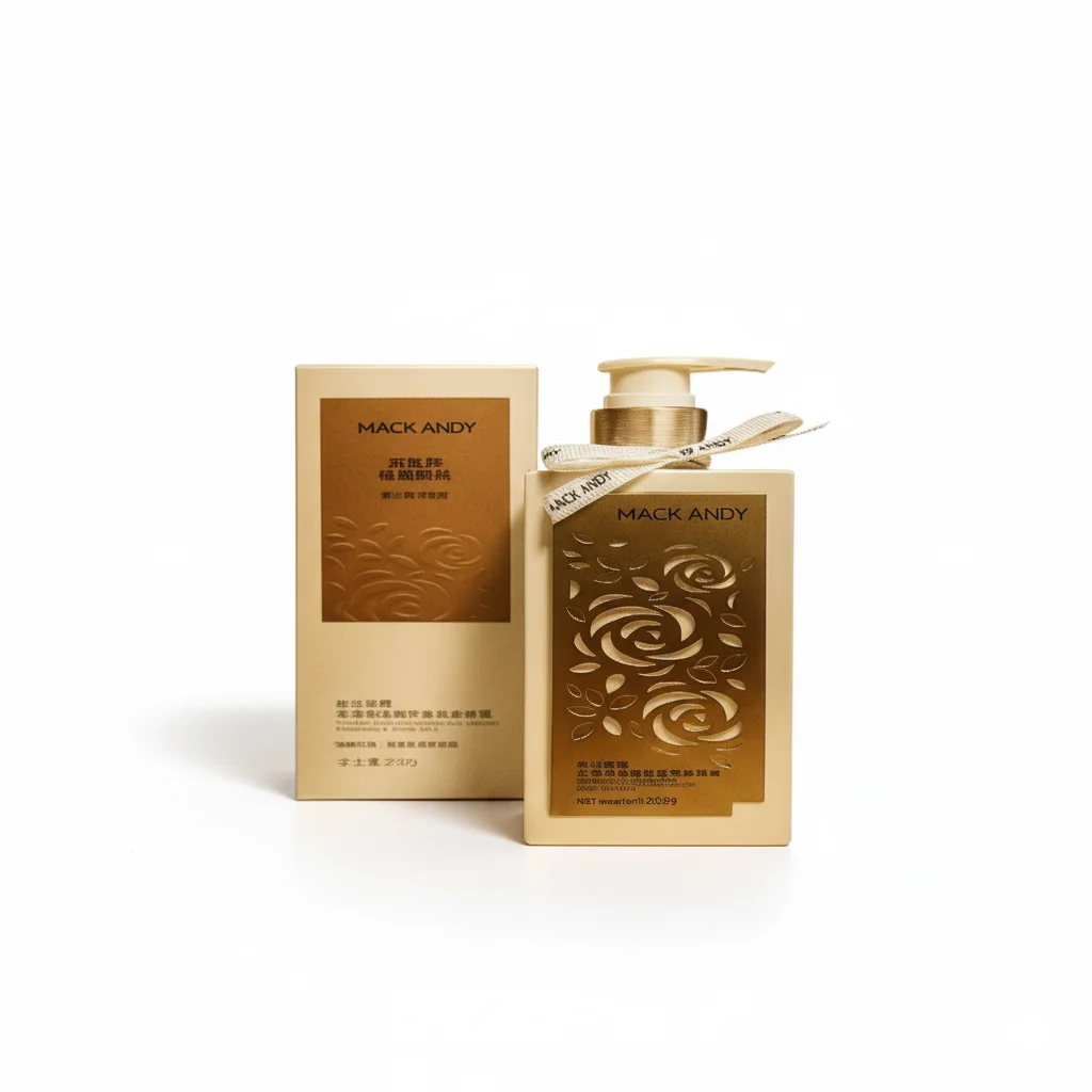 Indulge in a luxurious skincare experience with this exquisite body lotion from MACK ANDY. Housed in an elegant bottle adorned with a beautiful embossed rose design, this product is crafted to not only nourish your skin but also to add a touch of sophistication to your vanity. The matching luxury packaging makes it an ideal gift for someone special or a perfect treat for yourself.