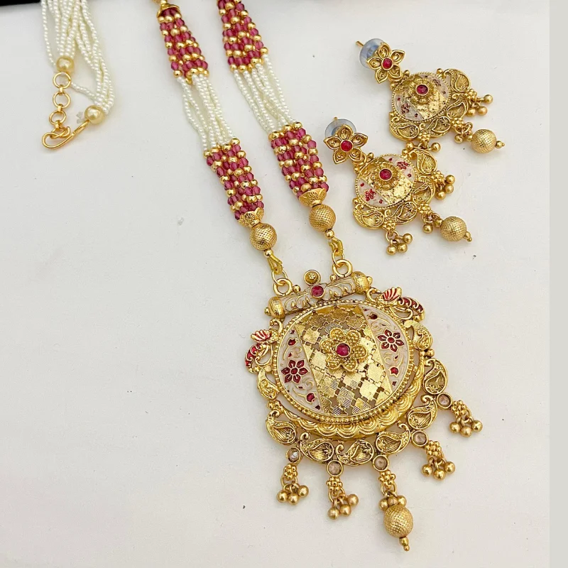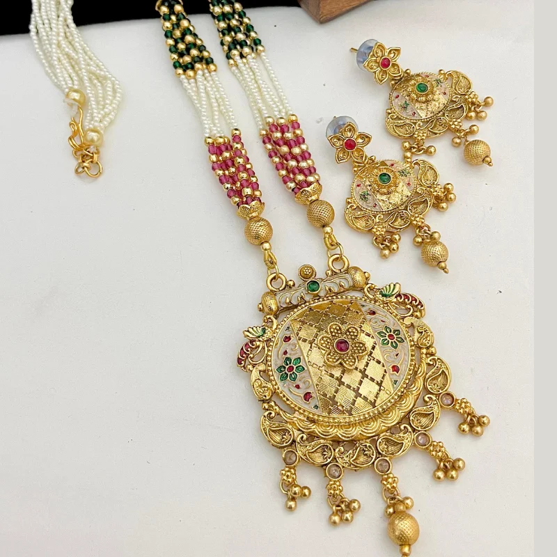 Majestic Gold-Plated Temple Jewelry Set with Circular Meenakari Pendant