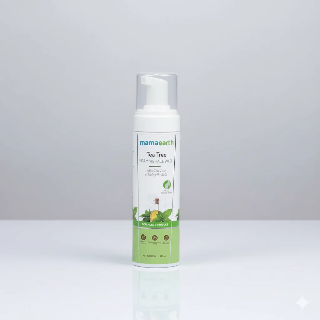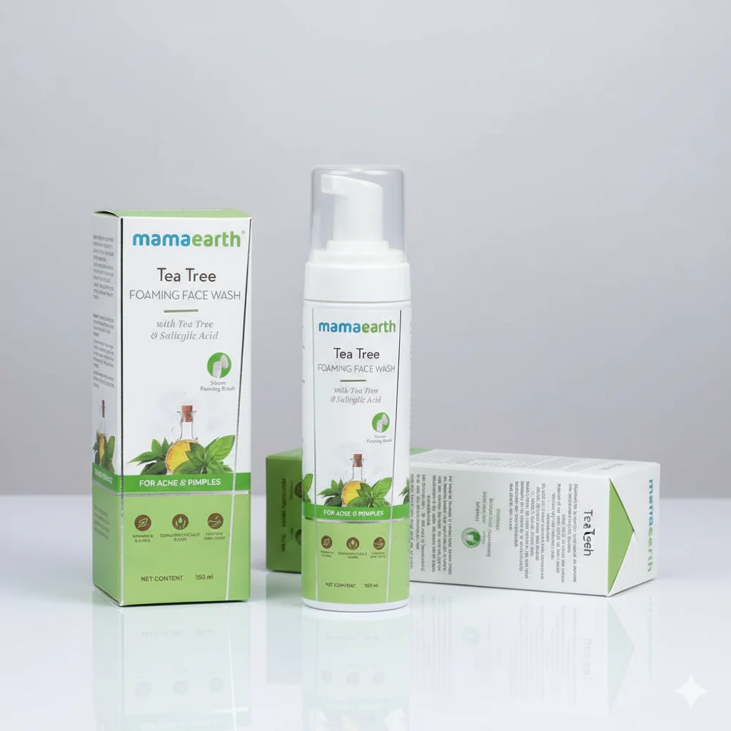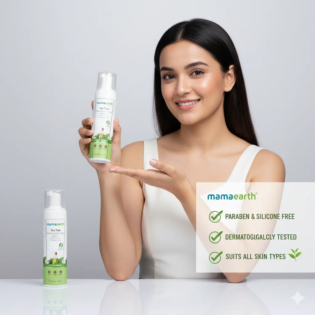 Natural Ingredients: Mamaearth is known for using natural ingredients, with the packaging featuring tea tree and lemon, suggesting a nature-inspired formula.