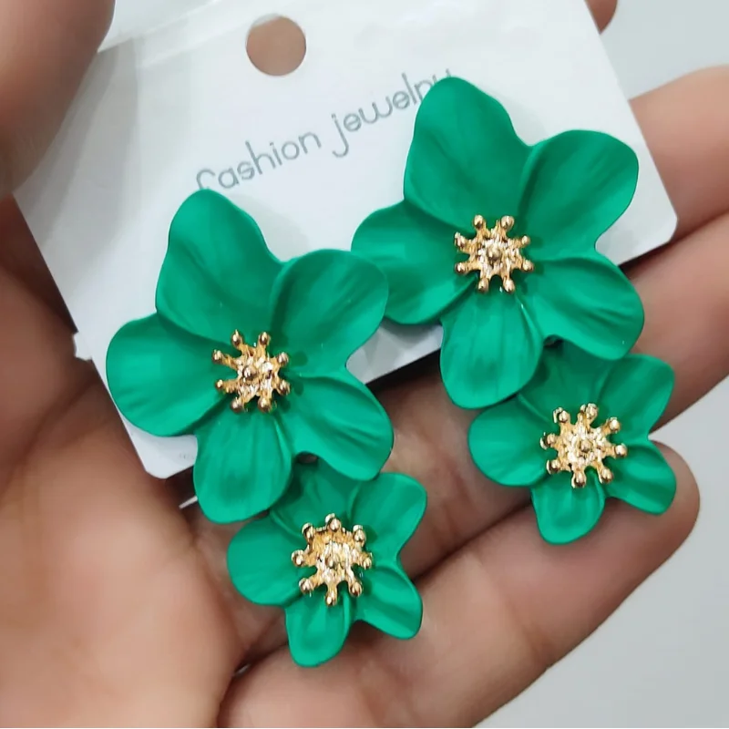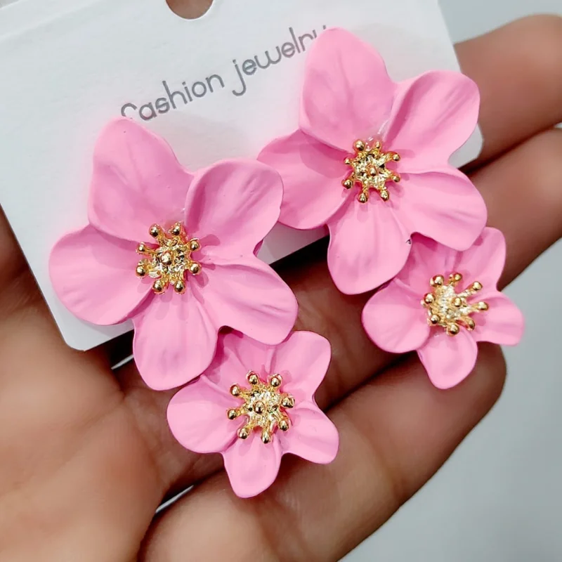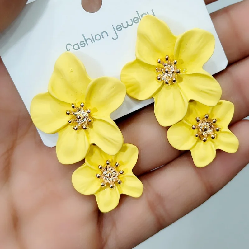 Matte Double Flower Statement Dangle Earrings