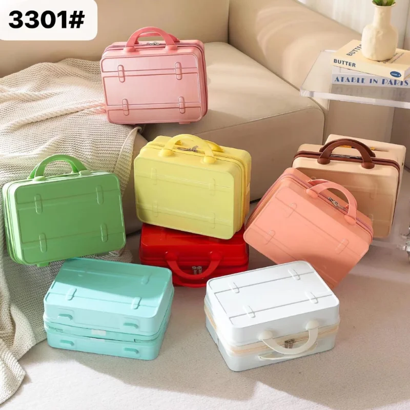 This mini travel suitcase is a stylish and practical solution for organizing your beauty essentials. Inspired by the classic aesthetic of vintage luggage, the 3301# model features a durable, impact-resistant hardshell exterior with a unique embossed horizontal line design and decorative buckle accents.
