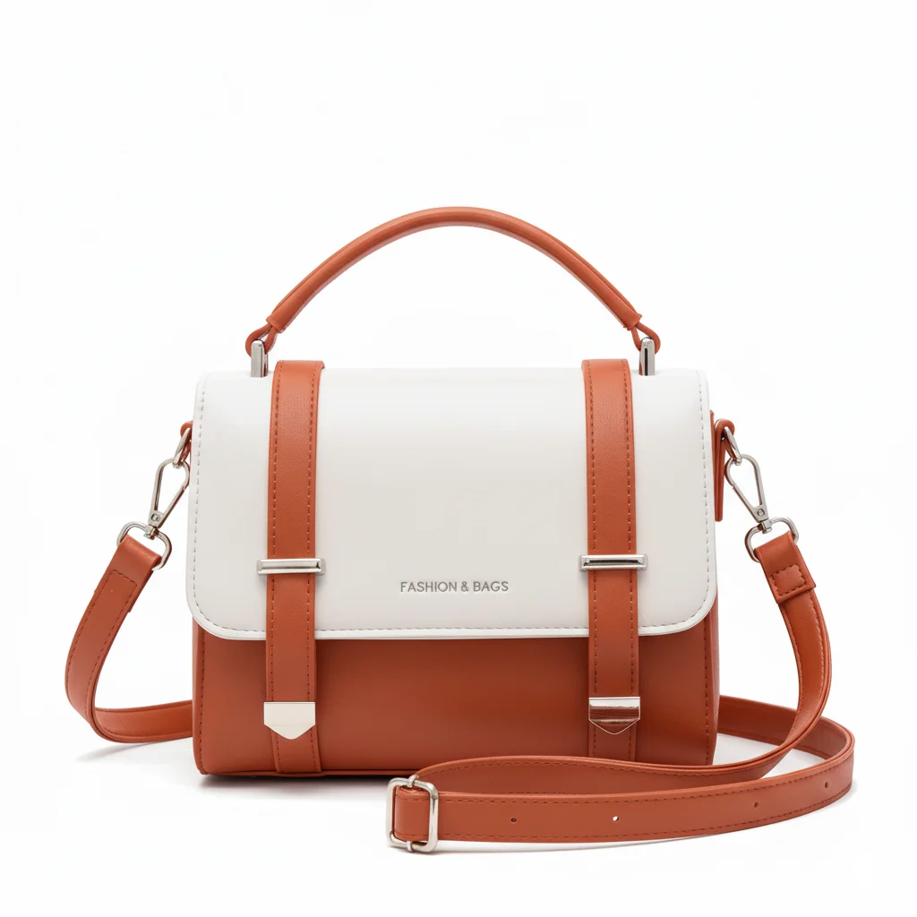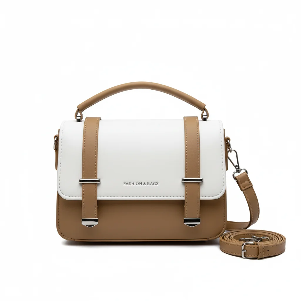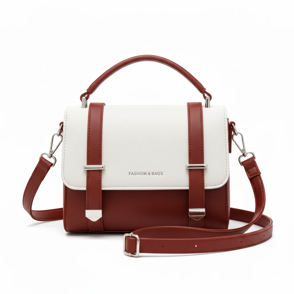 Modern Two-Tone PU Leather Satchel Handbag – Convertible Top-Handle & Crossbody Shoulder Bag for Women