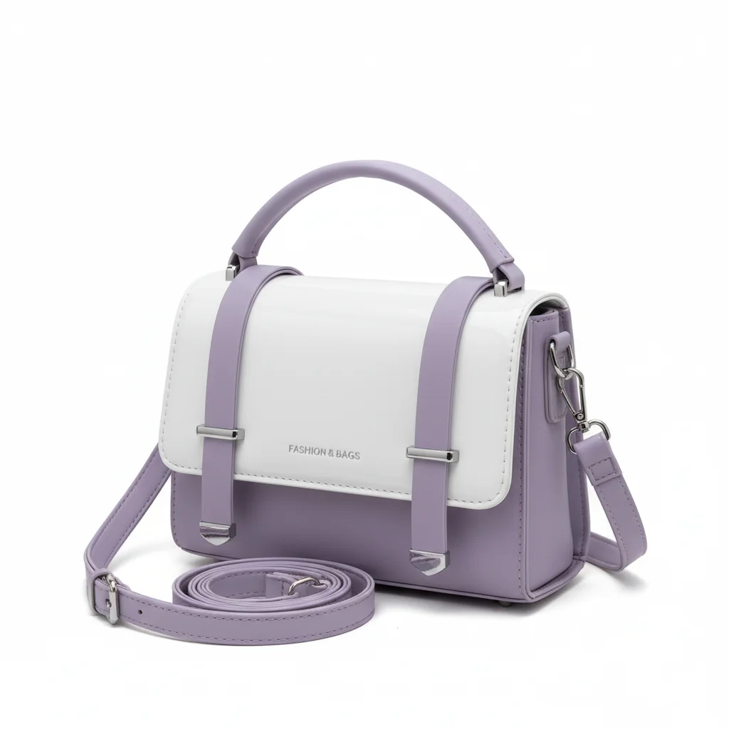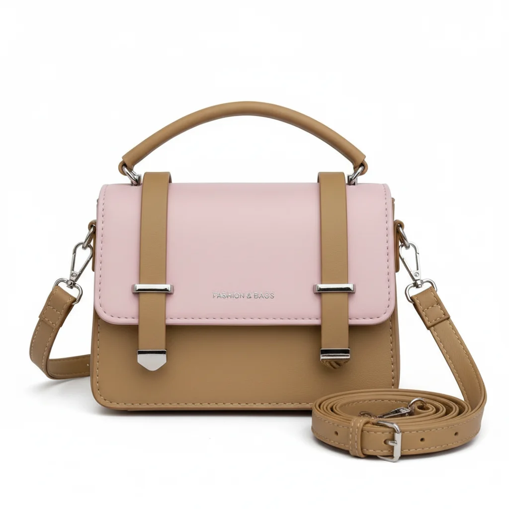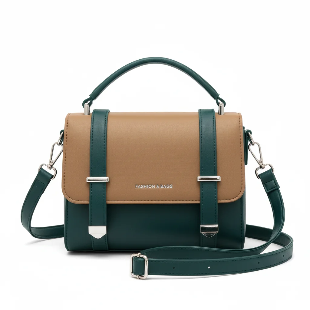 Modern Two-Tone PU Leather Satchel Handbag – Convertible Top-Handle & Crossbody Shoulder Bag for Women