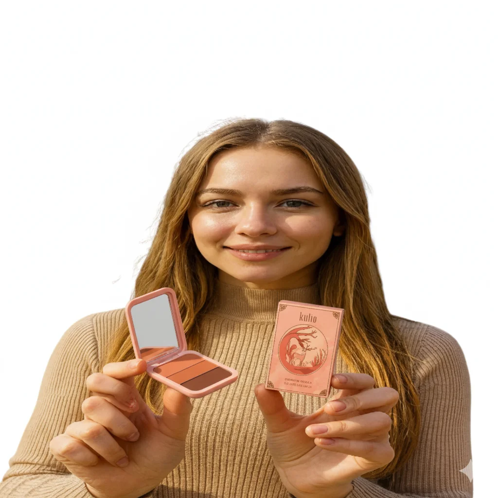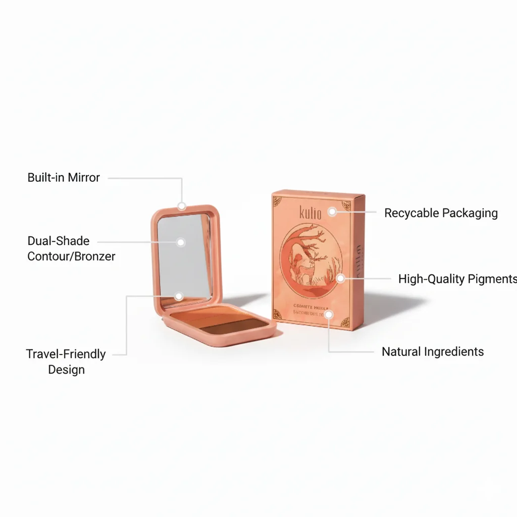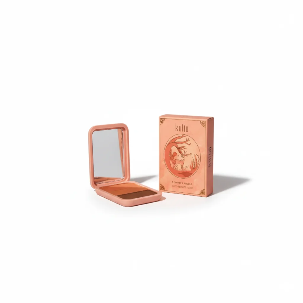 A makeup palette bearing the brand name “Kulia” has been observed, though specific details about the product and its manufacturer are not readily available through public sources. The item, presented in a peach-colored compact with a matching outer box, appears to be a contouring and highlighting palette.