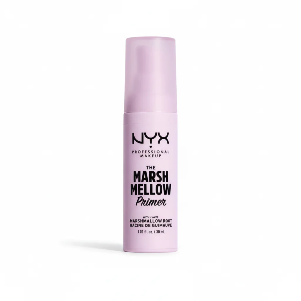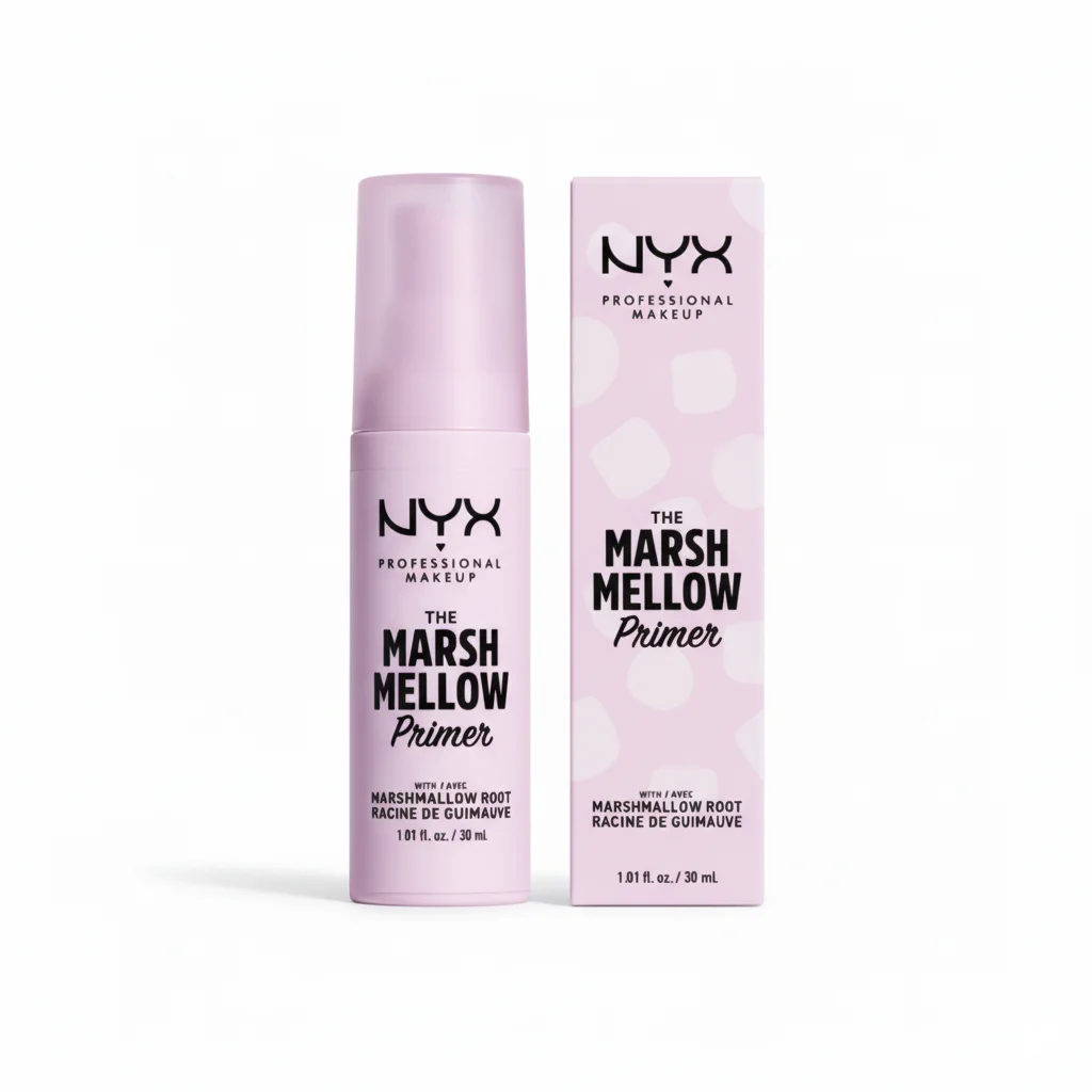 NYX Professional Makeup’s “The Marshmellow Primer” is a facial primer designed to prepare the skin for makeup application. This primer is infused with Marshmallow Root extract (“Racine de Guimauve” in French), which is often associated with soothing and softening properties in skincare. The name “Marshmellow” suggests a soft, smooth, and perhaps plumping effect on the skin, creating an ideal canvas for foundation and other makeup. The product comes in a pale lavender-colored bottle, reflecting its theme, and contains 1.01 fl. oz. / 30 mL of product, a standard size for a makeup primer. It is part of the NYX Professional Makeup line, known for its accessible yet professional-grade cosmetics.