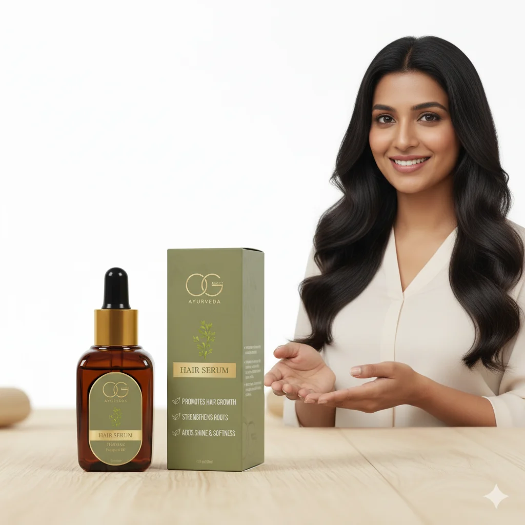 This product is a “Face Serum” from the brand “OG Beauty Ayurveda,” explicitly positioned as an “ANTI-AGEING” treatment. The key