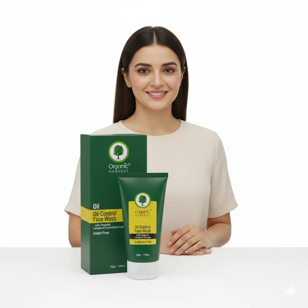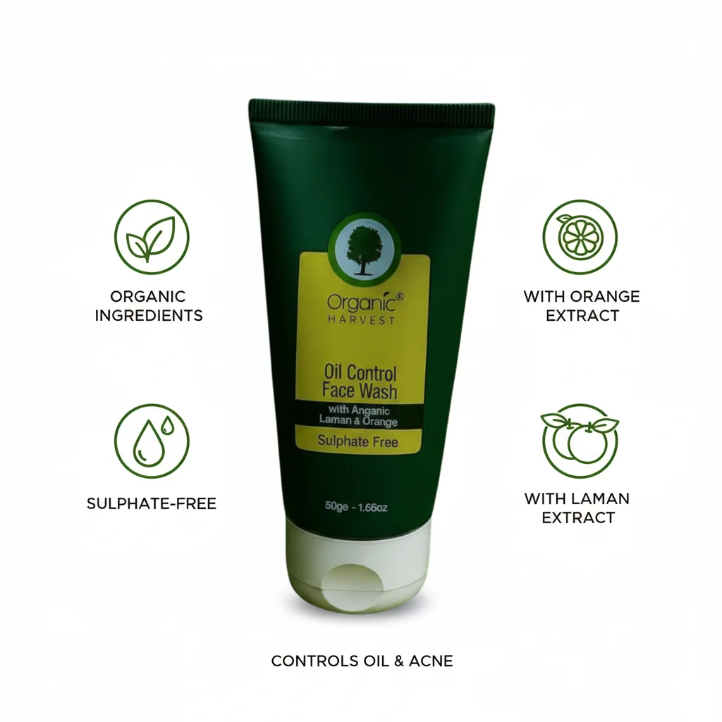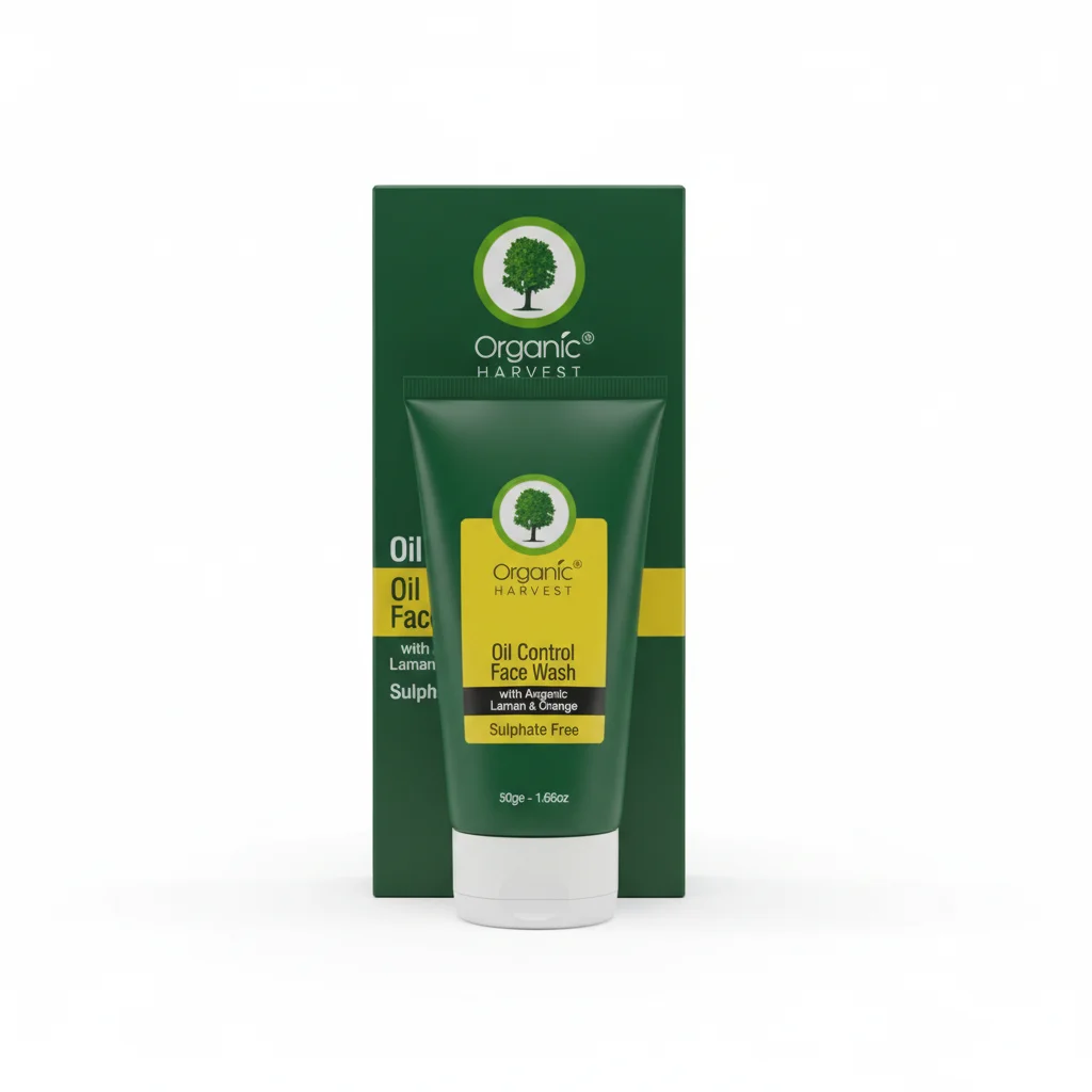 Organic Harvest Oil Control Face Wash (Sulphate Free)The Organic Harvest Oil Control Face Wash is a certified organic and sulphate-free solution specifically formulated to manage excess oil and shine, particularly beneficial for oily and combination skin types. This gentle yet effective face wash utilizes natural ingredients to deeply cleanse pores, remove impurities, dirt, and excess sebum without stripping the skin of its natural moisture. As a sulphate-free formula, it ensures a mild cleansing experience, minimizing the risk of irritation while still effectively controlling oil production. It helps to mattify the skin, leaving it feeling refreshed, clean, and balanced throughout the day, promoting a clearer, healthier, and less greasy complexion. The product comes in a convenient tube, housed within an eco-friendly carton, aligning with Organic Harvest’s commitment to natural beauty and sustainable practices.