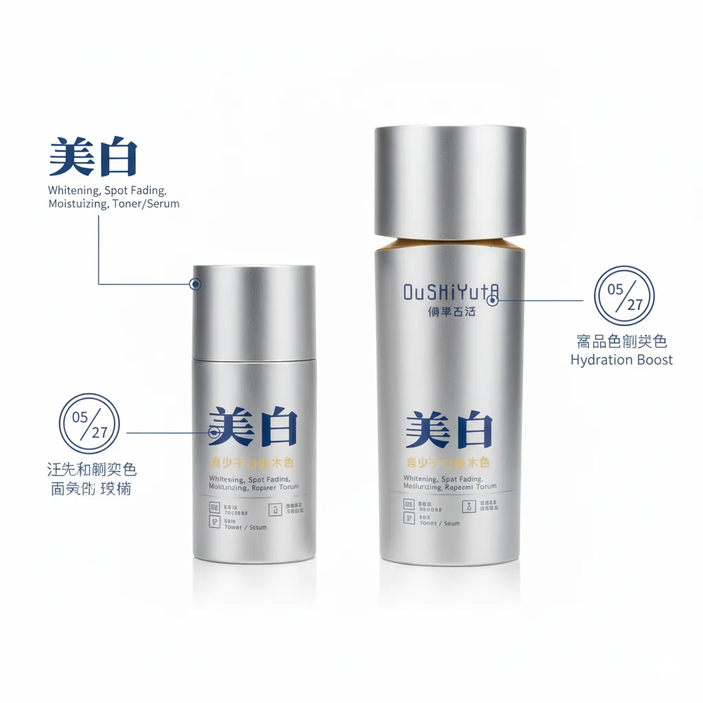 This product, branded as OuShiYuTa , is a dual-purpose toner and serum formulated for comprehensive skin brightening and care. It is designed to address issues such as dullness, uneven skin tone, and dark spots. The formula aims to provide deep moisturization and repair to the skin barrier, leaving the skin looking radiant and feeling hydrated. It is presented as suitable for various skin types and can be used for both morning and evening skincare routines.