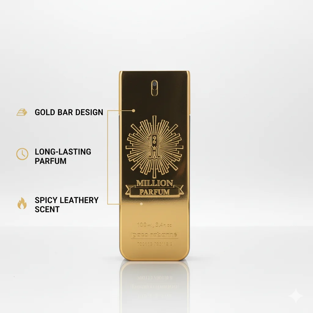 Paco Rabanne 1 Million Parfum is a luxurious and intense men’s fragrance presented in its iconic and unmistakable gold ingot-shaped bottle. This “Parfum” concentration denotes a high level of fragrance oils, ensuring exceptional longevity and a powerful scent trail. The bottle itself is a statement piece, reflecting the opulence and confidence associated with the 1 Million line. It features an engraved design that radiates from the “1 MILLION” emblem, further emphasizing its prestigious nature. This fragrance is crafted for the man who embodies success, charisma, and a bold sense of style, likely offering a rich, warm, and sophisticated aromatic profile.