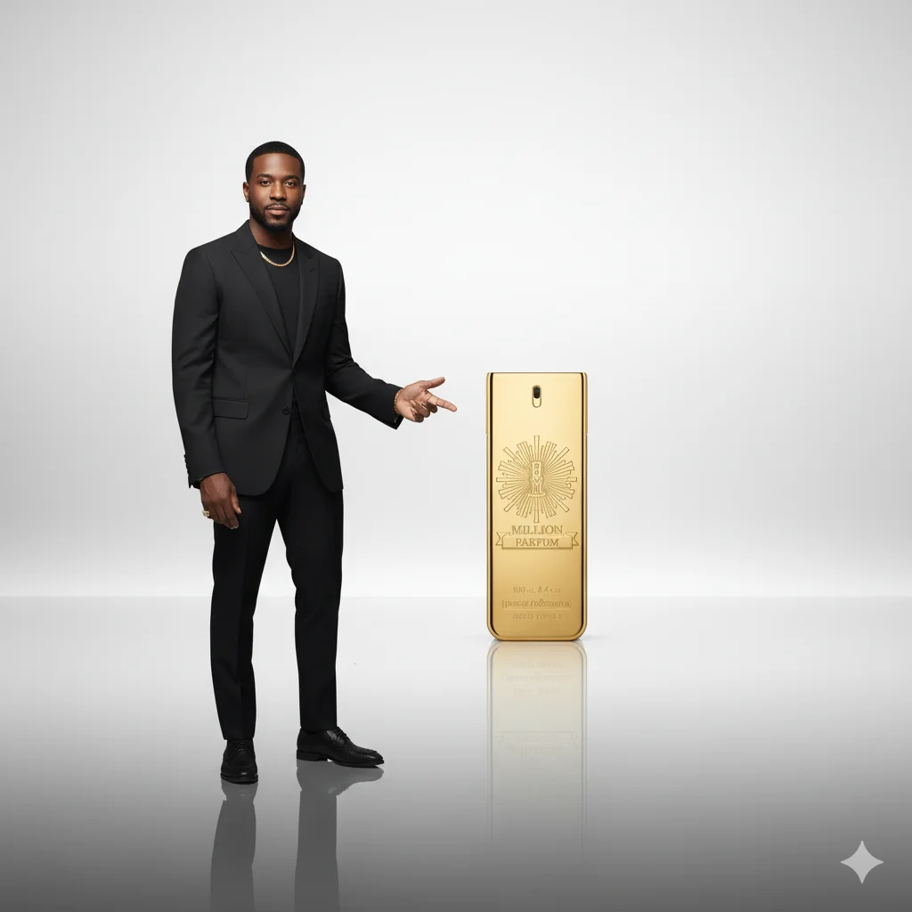 Paco Rabanne 1 Million Parfum is a bold and luxurious men’s fragrance, instantly recognizable by its distinctive gold ingot-shaped bottle. This “Parfum” concentration indicates an intense and long-lasting scent, designed for impact and sophistication. The accompanying model, dressed in a sharp black suit, perfectly embodies the fragrance’s opulent and confident persona. The 1 Million line is known for its powerful, often warm and spicy, aromatic compositions, appealing to those who desire a scent that makes a statement and exudes charisma and success. This particular “Parfum” version promises an even richer and more captivating interpretation of the iconic scent.