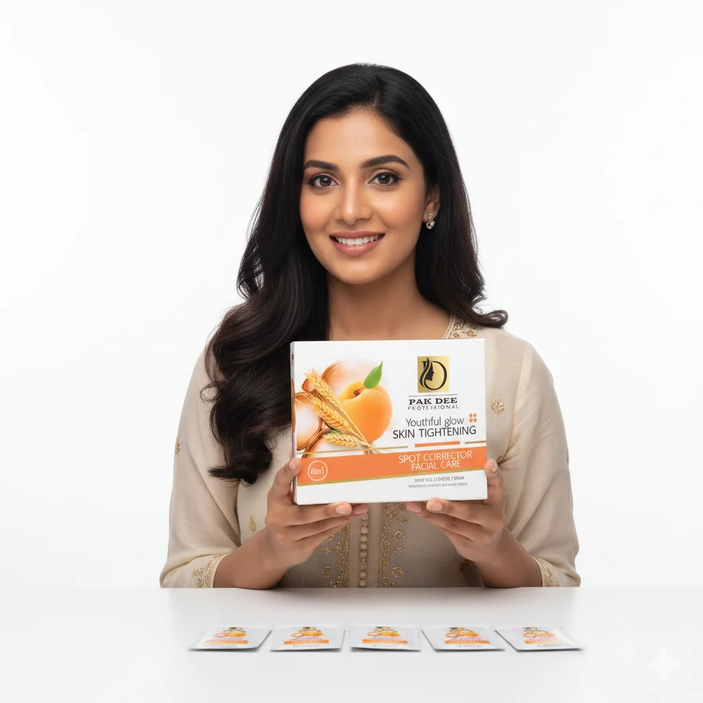 Multi-Step Regimen: Comes with multiple components (sachets and a serum) indicating a complete facial treatment process.