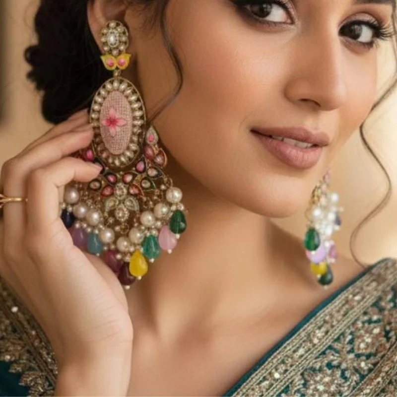Pastel Bloom Meenakari & Kundan Heritage Chandelier Earrings