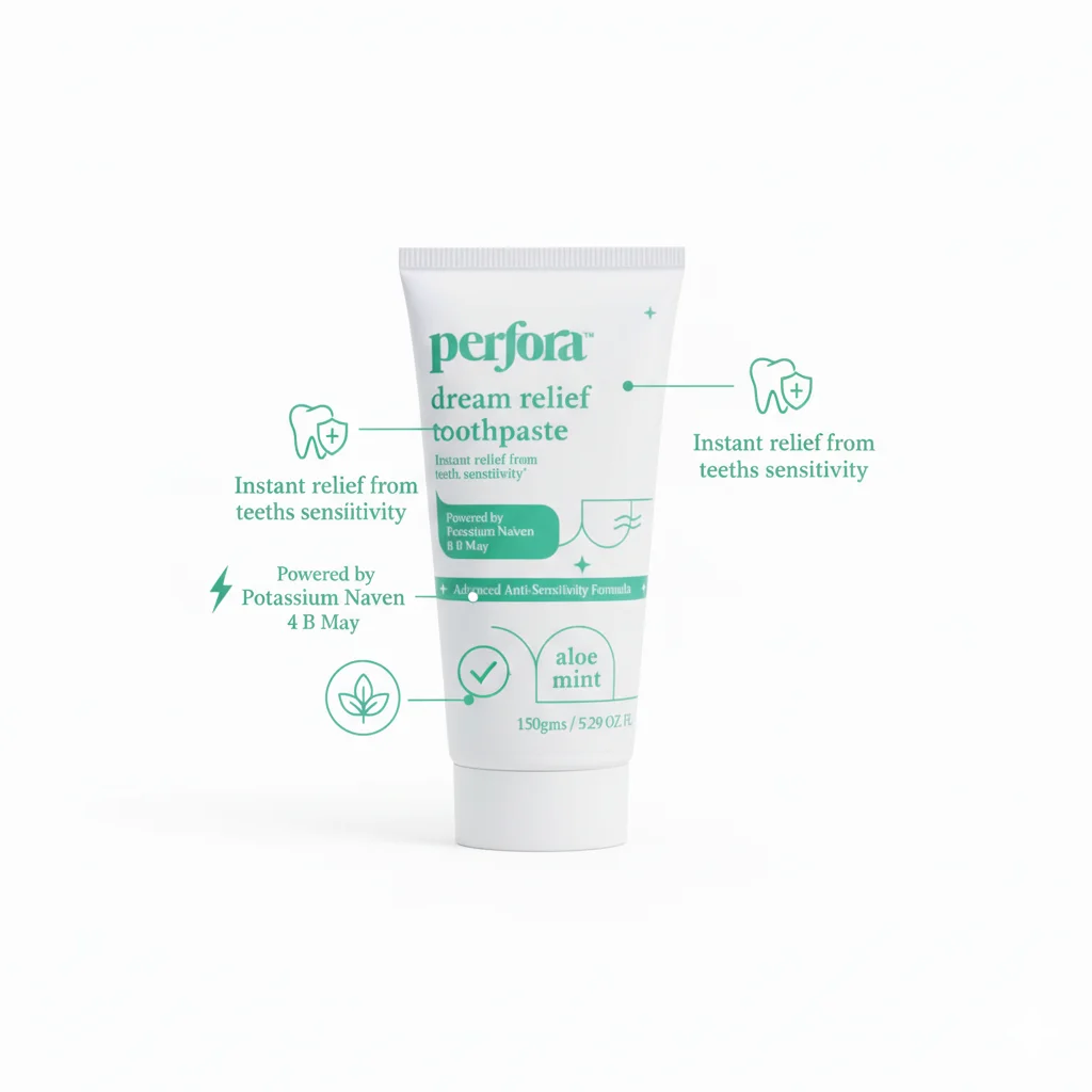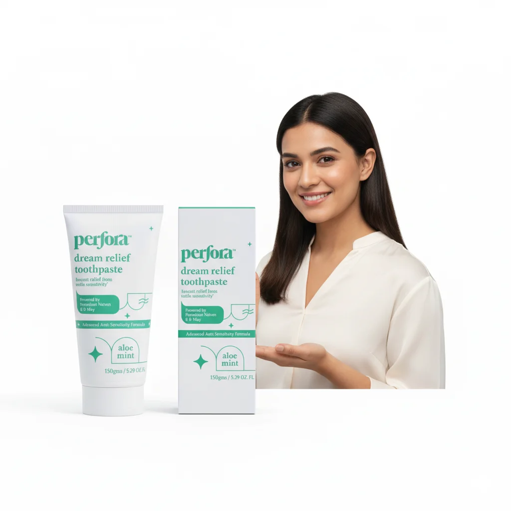 Experience quick and soothing comfort with Perfora Dream Relief Toothpaste, an “Advanced Anti-Sensitivity Formula” designed for “instant relief from teeth sensitivity.” Infused with a refreshing Aloe Mint flavor, this toothpaste is powered by a unique blend of Potassium Naiven and N-Ha (Nano-Hydroxyapatite). These active ingredients work together to effectively block pain signals and remineralize tooth enamel, providing both immediate relief and long-term protection against the discomfort of sensitive teeth. Ideal for daily use, it ensures your mouth feels clean, fresh, and free from sensitivity, allowing you to enjoy life’s simple pleasures without hesitation.