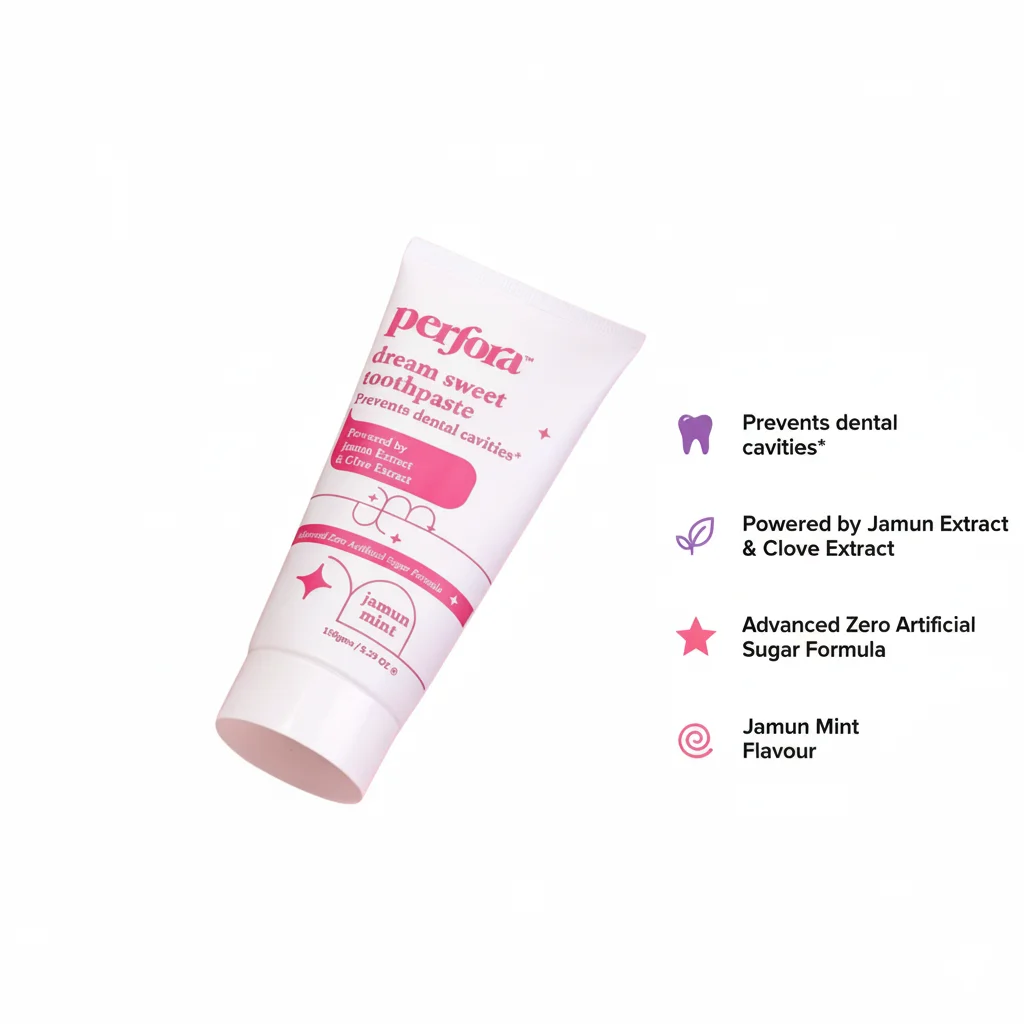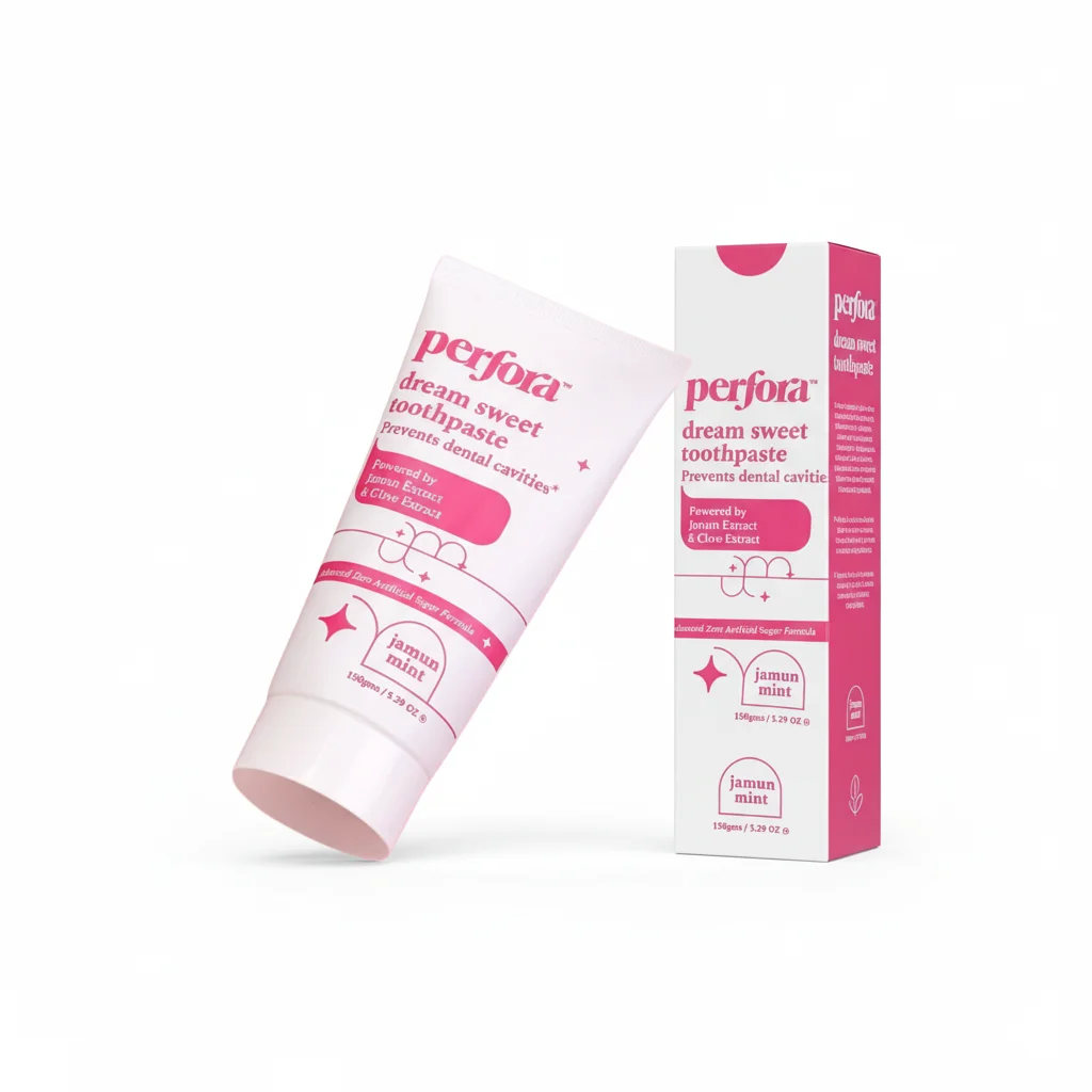 Experience a delightful and protective brushing experience with Perfora Dream Sweet Toothpaste, featuring a unique “Jamun Mint” flavor. This advanced zero artificial sugar formula is specifically engineered to “prevent dental cavities,” providing robust protection for your teeth. Powered by a potent blend of Jamun Extract and Clove Extract, it actively works to strengthen enamel, fight cavity-causing bacteria, and ensure long-lasting oral health. The refreshing Jamun Mint taste offers a pleasant twist on traditional toothpaste, making daily brushing a more enjoyable and effective defense against cavities.