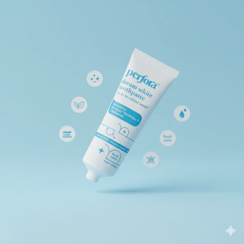 Unlock a significantly brighter smile with Perfora Dream White Toothpaste, formulated to deliver “Up to 3x whiter teeth.” This advanced teeth whitening formula is powered by PeerCare® PerlWhite 1® and Botanicals, a powerful combination designed to gently yet effectively remove stubborn surface stains and reveal the natural radiance of your smile. The invigorating “fresh mint” flavor provides an immediate burst of clean freshness, leaving your mouth feeling revitalized and your breath minty. Experience a professional-level whitening experience from the comfort of your home, achieving noticeable results with regular use for a confidently dazzling smile.