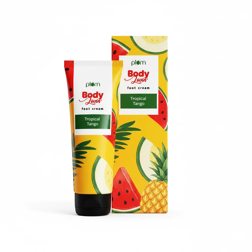Give your feet a refreshing treat with the Plum BodyLovin’ Tropical Tango Foot Cream. This vibrant foot cream is designed to hydrate, soften, and soothe tired feet, infusing them with an exotic “Tropical Tango” fragrance that evokes images of sun-drenched islands. The cheerful yellow packaging, adorned with playful illustrations of watermelon, pineapple, and other tropical fruits, captures the essence of a summer paradise. Its rich formula works to moisturize dry, rough skin, leaving your feet feeling refreshed, smooth, and revitalized. The convenient tube packaging allows for easy and mess-free application, making it a perfect addition to your daily foot care routine.