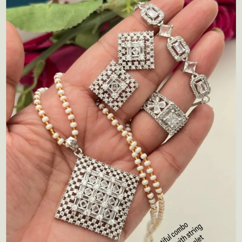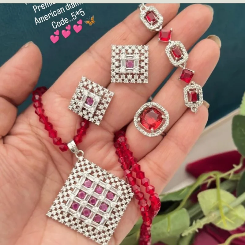 Premium 5-Piece American Diamond & Beaded Jewelry Set