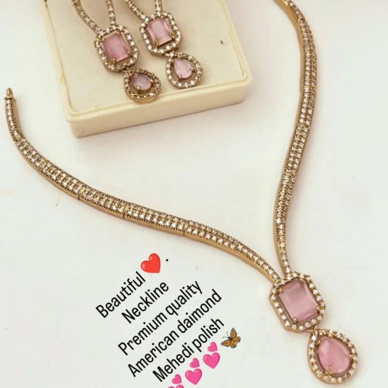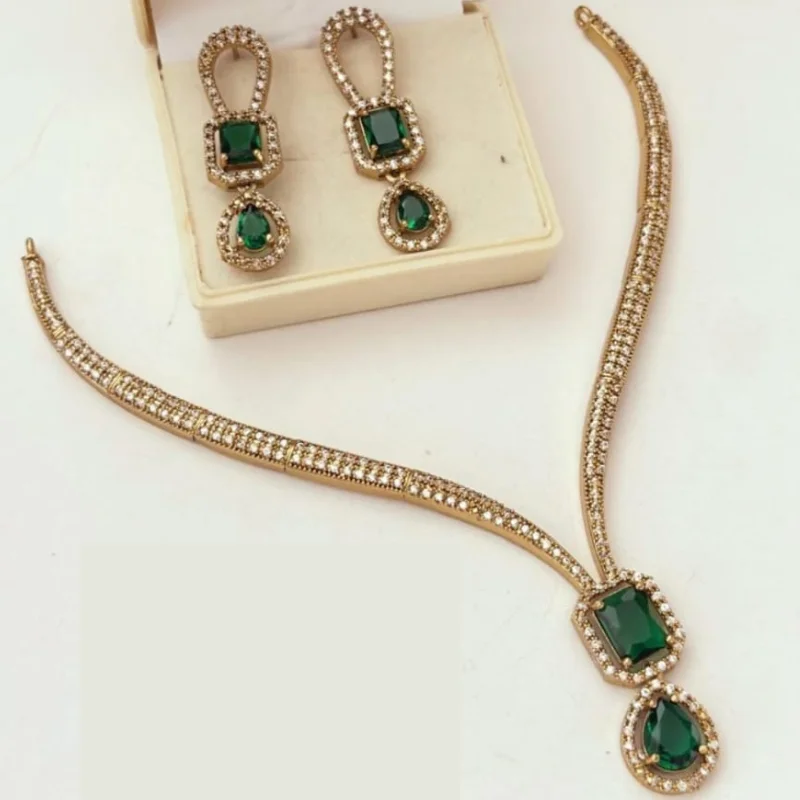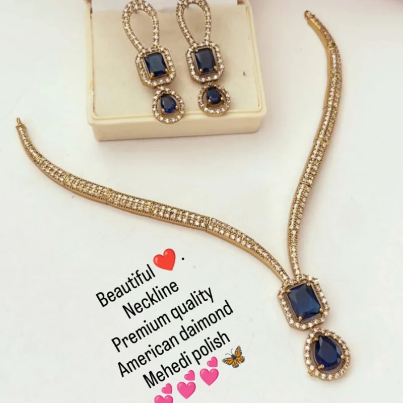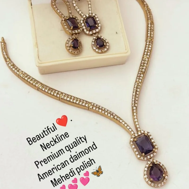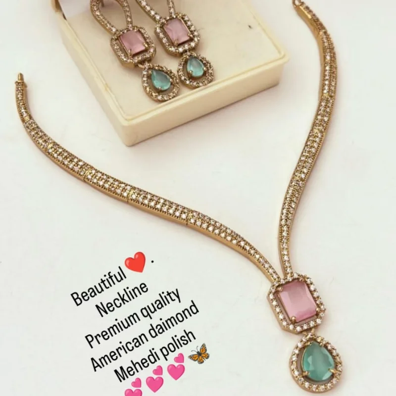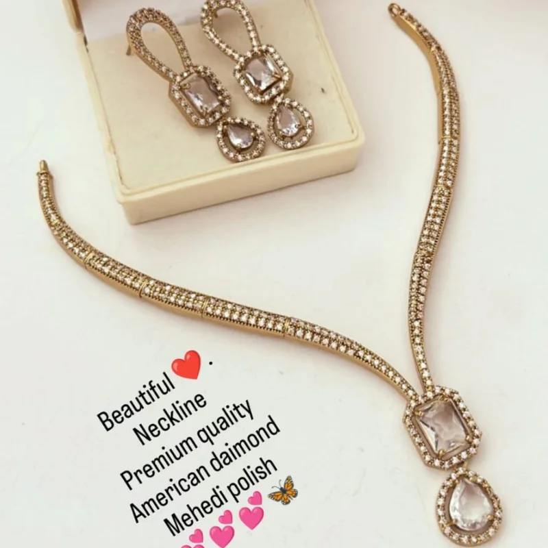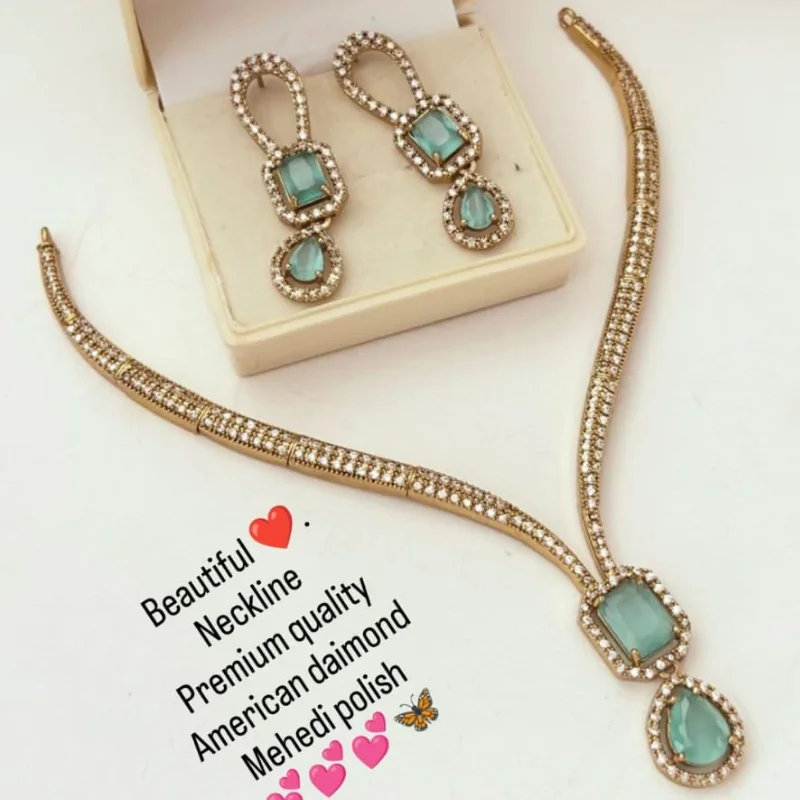 Premium American Diamond (AD) Necklace Set with Antique Mehendi Polish