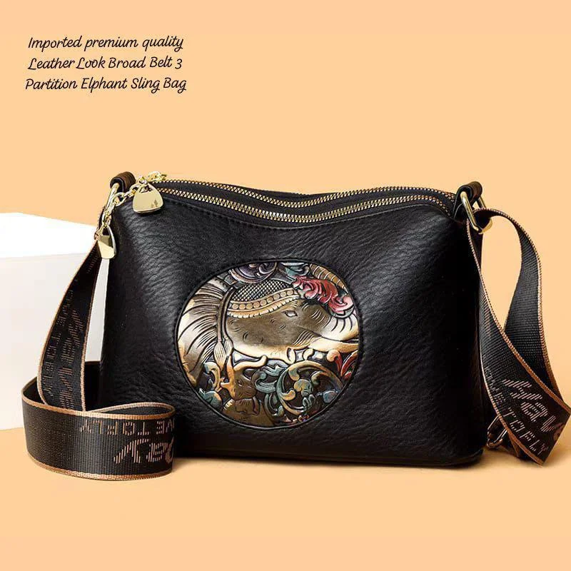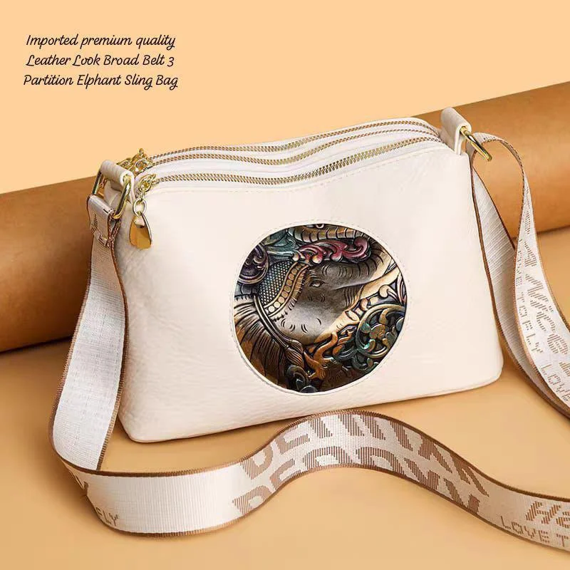 Premium Crossbody Sling Bag – Embossed Elephant Design with Trendy Broad Strap