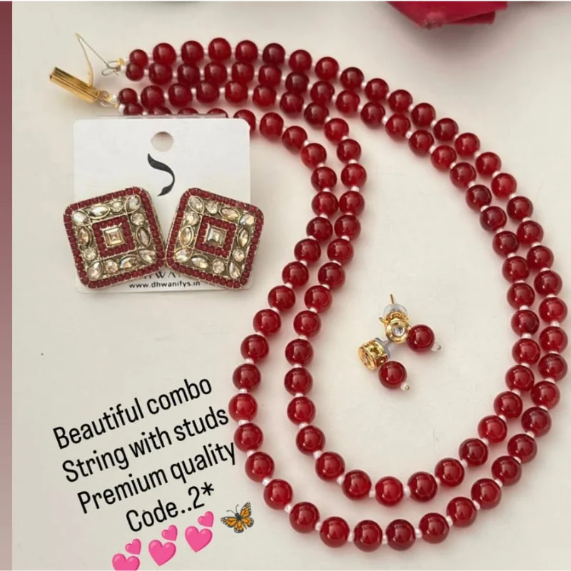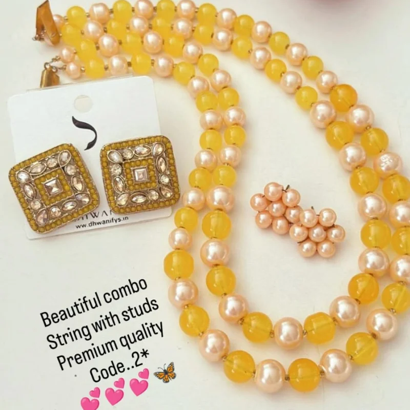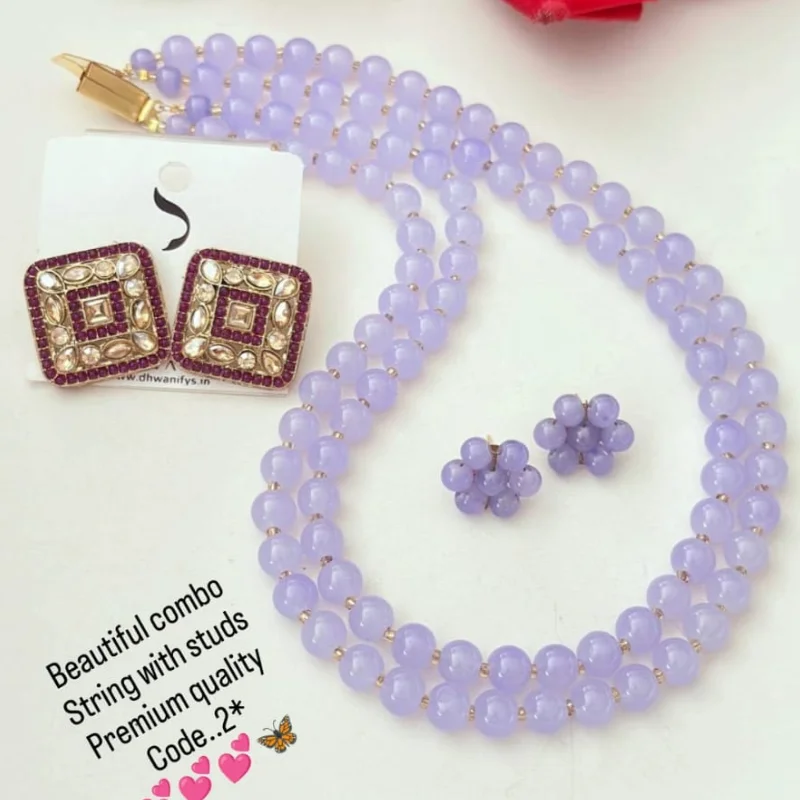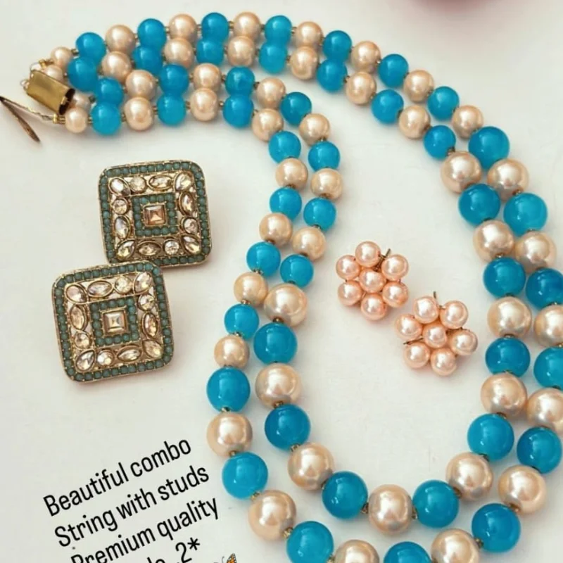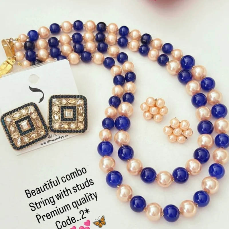 Premium Dual-Strand Bead Necklace Set with Designer Studs Combo