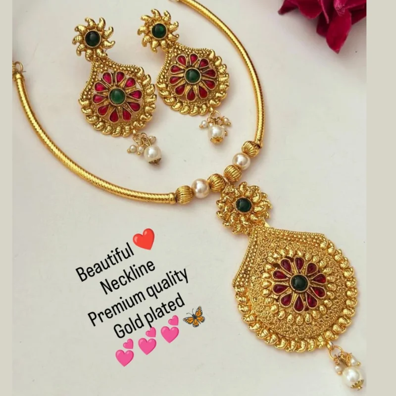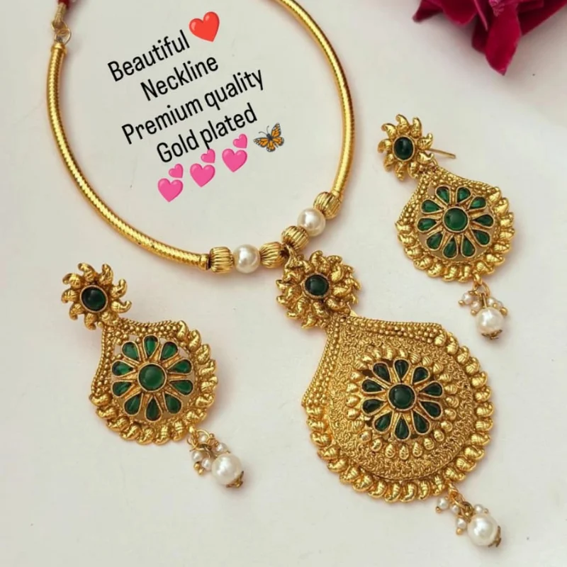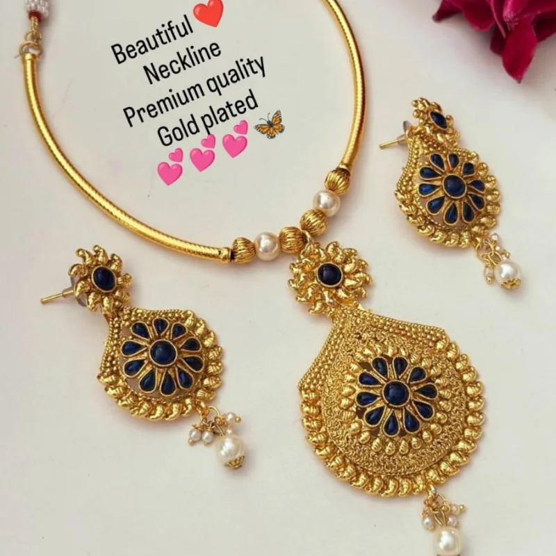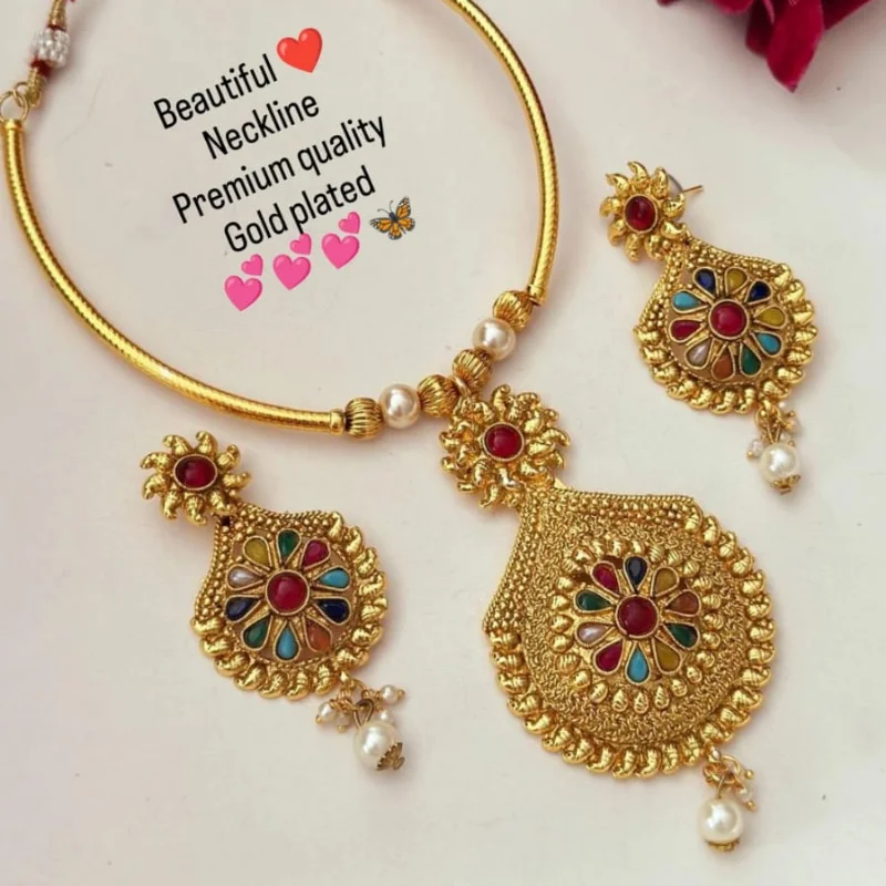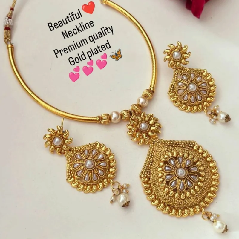 Premium Gold Plated Floral “Neckline” Jewelry Set with Pearls