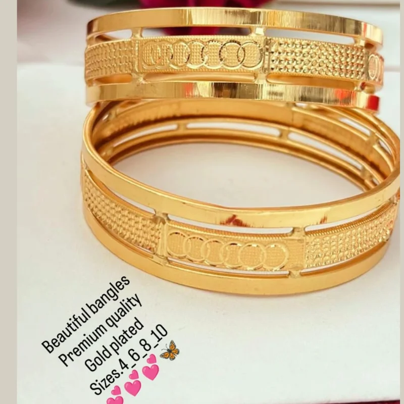 Make a sophisticated statement with this luxurious pair of Premium Quality Gold Plated Bangles. These bangles are crafted to offer the opulence of real gold jewelry with a modern geometric twist.