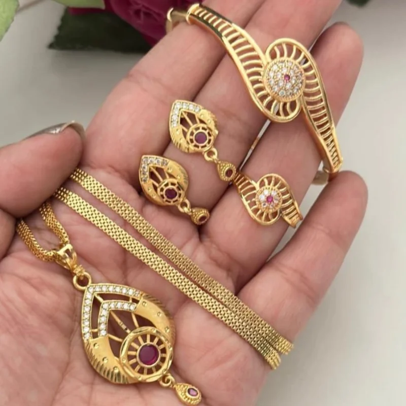 Complete 5-Piece Combo: Includes 1 Pendant with Chain, 1 Pair of Earrings, 1 Bracelet (Bangle), and 1 Ring.