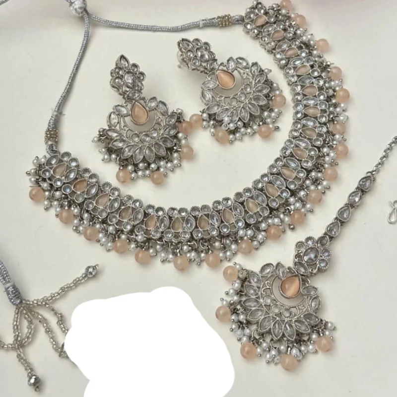 Tags: choker set, classic jewellery, gift for her, jewellery set, partywear jewellery, Tikka set