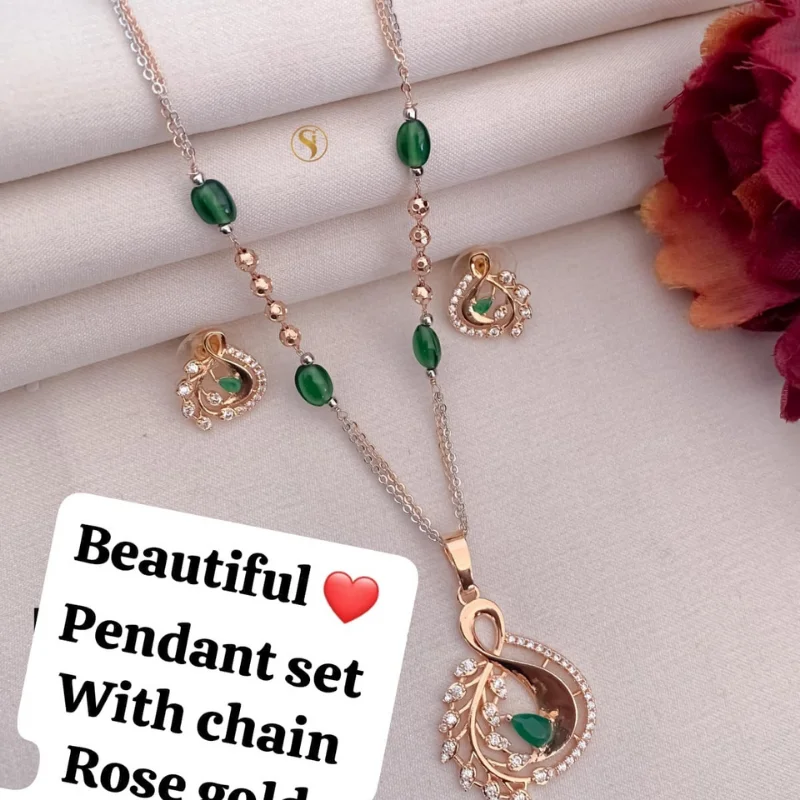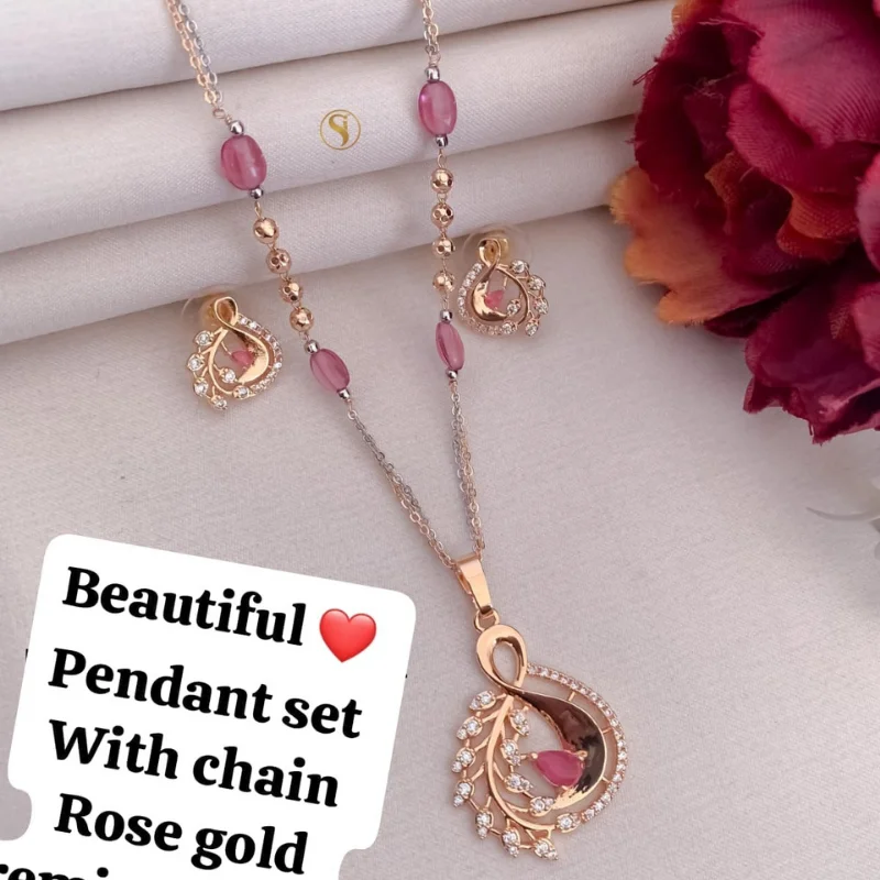 Premium Rose Gold Stylized Motif Pendant Set with Designer Beaded Chain