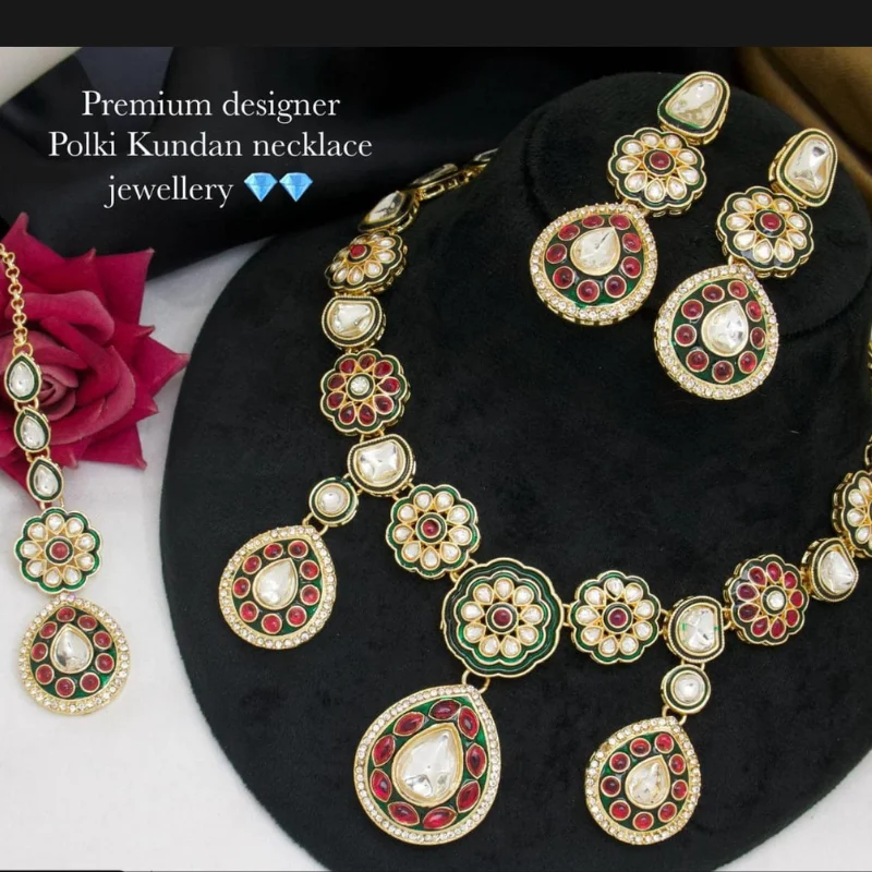 Premium Silver-Tone Designer Polki Kundan Necklace Set