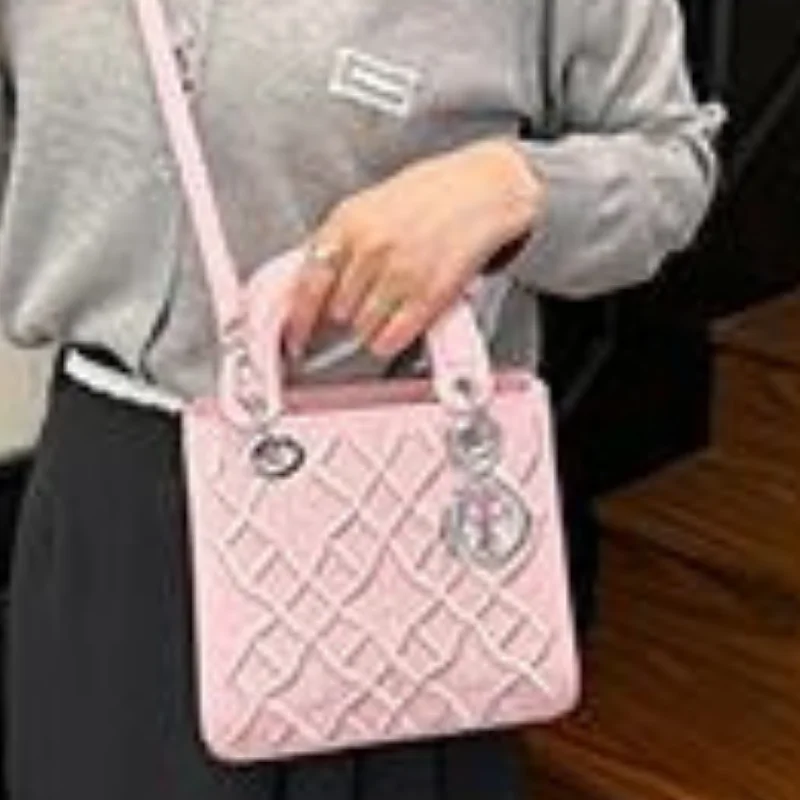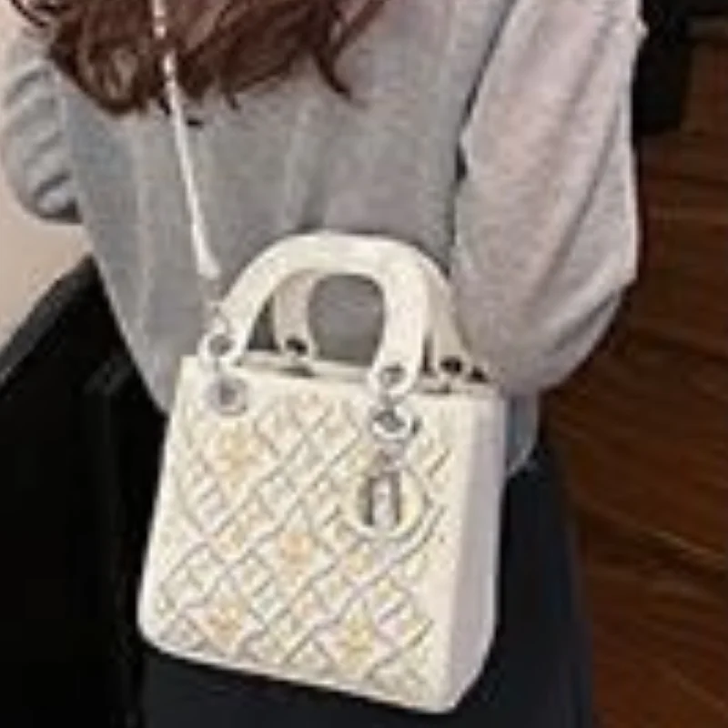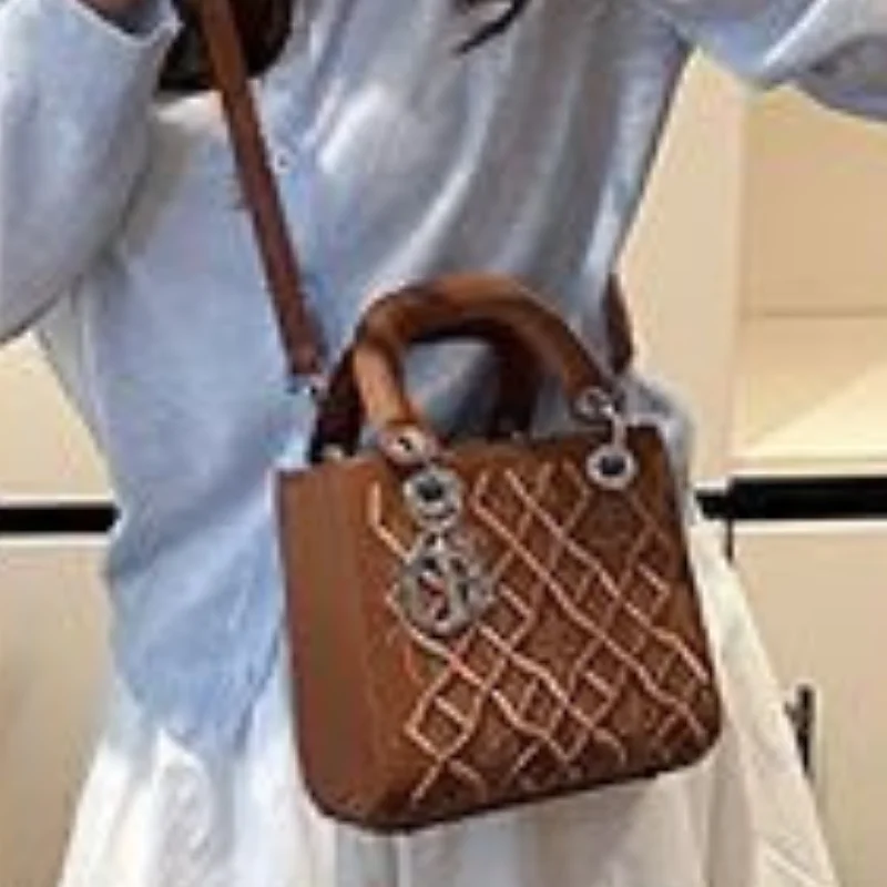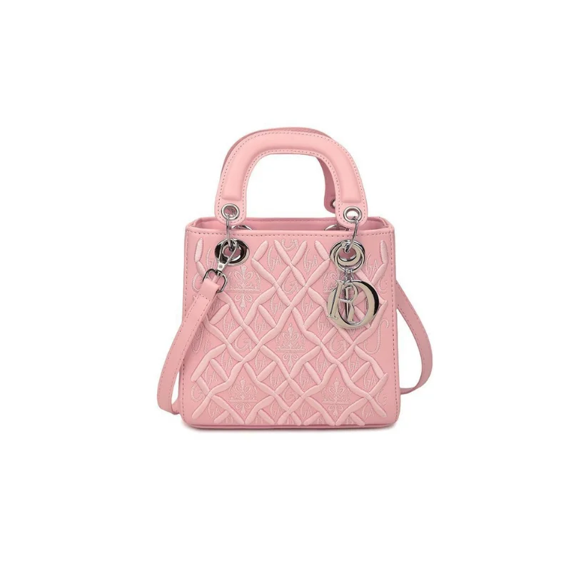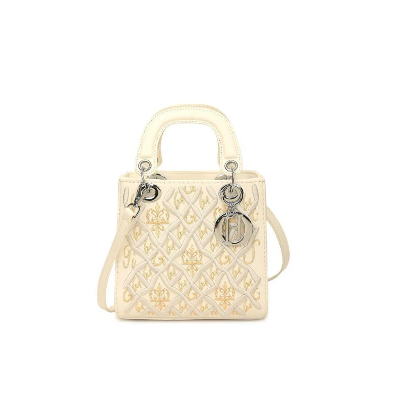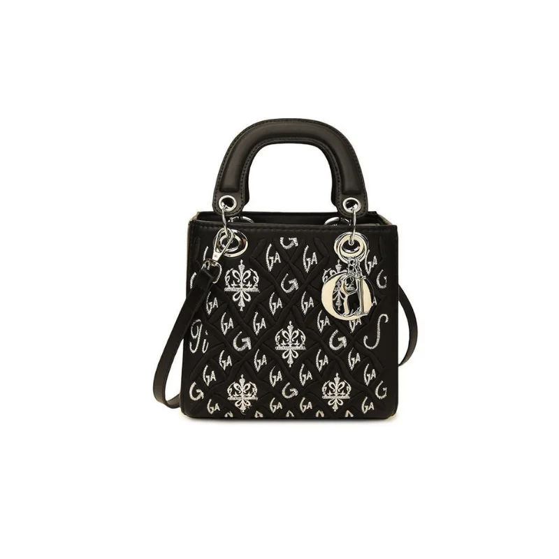 Quilted Structure Handbag with Silver-Tone ‘R’ Charm and Detachable Strap