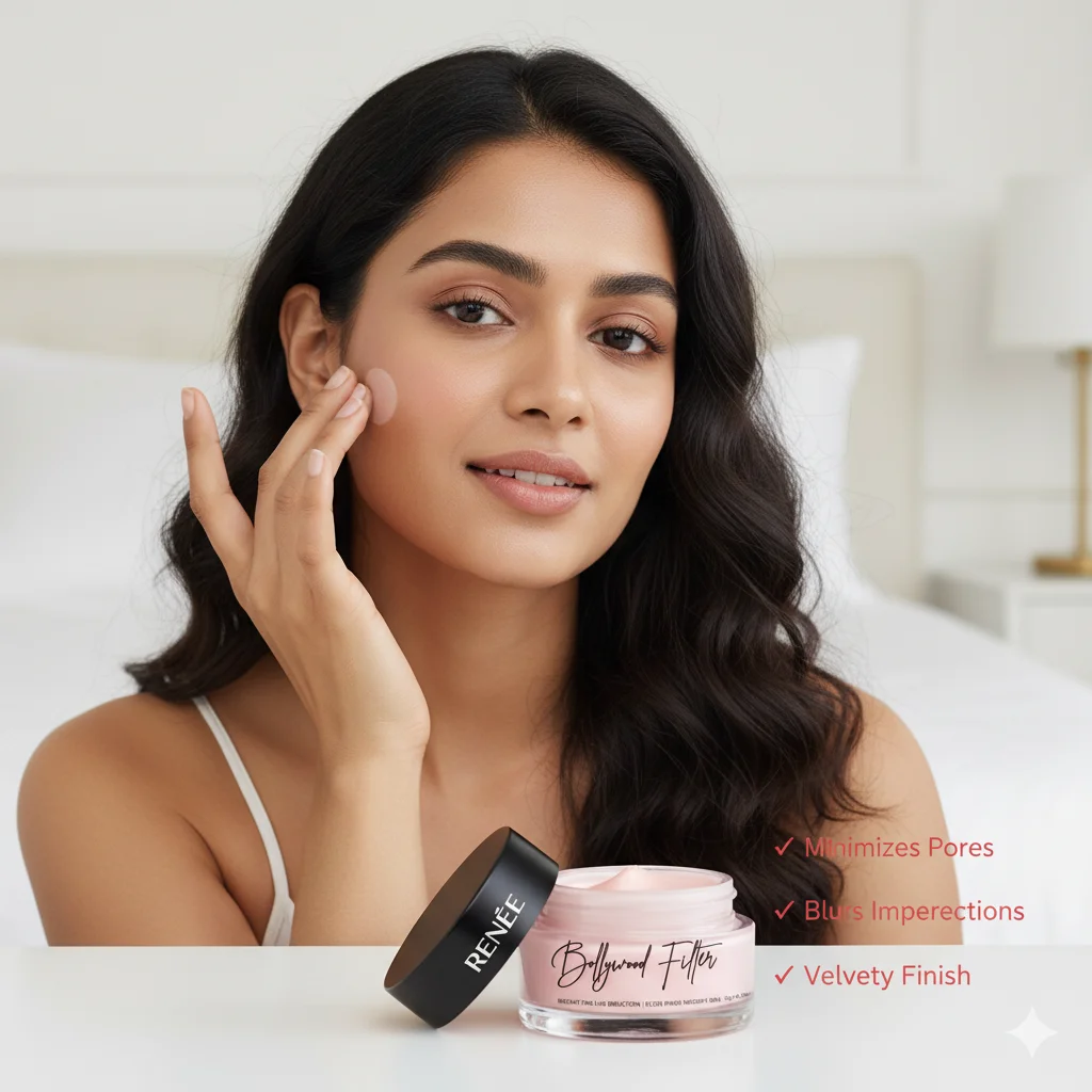 Branding: Marketed under the brand “RENÉE” with a unique product name “Bollywood Filter,” suggesting a connection to achieving a glamorous, “Bollywood-ready” complexion.