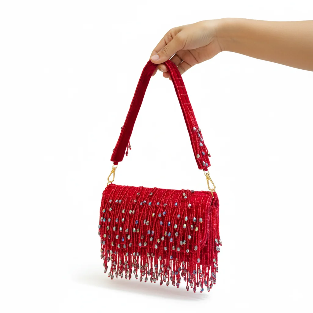 Ornate Maroon Velvet Embroidered Bridal Clutch
