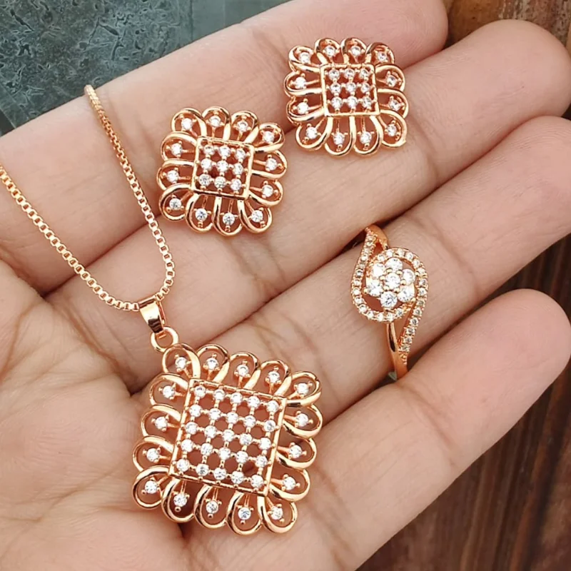 • Coordinated 3-Piece Ensemble: A complete, ready-to-wear set including one pendant necklace, one pair of stud earrings, and one statement ring.