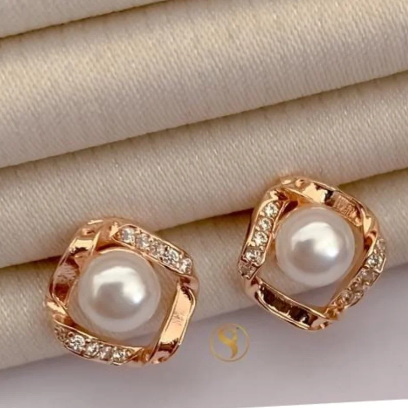 Dainty Rose Gold Bow-Knot Stud Earrings – American Diamond & Pearl Drop Design