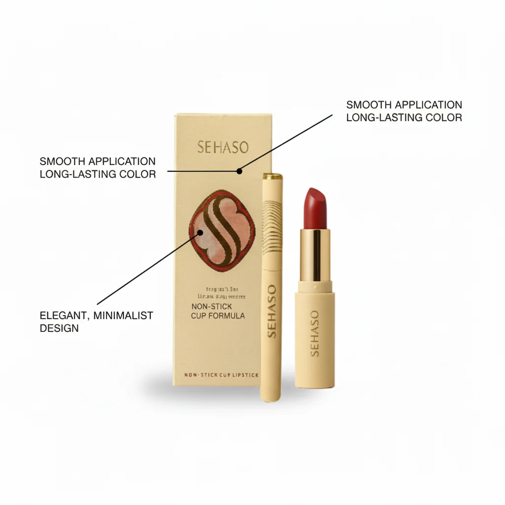 While specific details about the SEHASO brand are not widely available, “non-stick cup” lipsticks generally offer the following features: