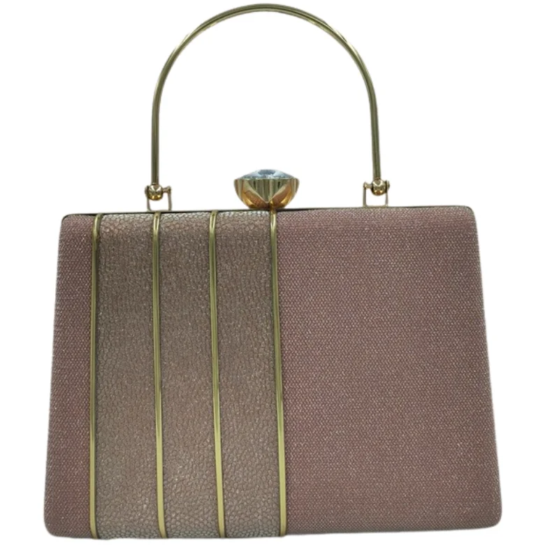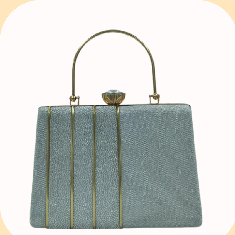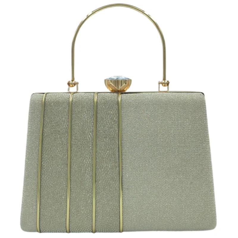 Shimmer Box Clutch with Vertical Metal Accents & Crystal Clasp – Sophisticated Evening Handbag