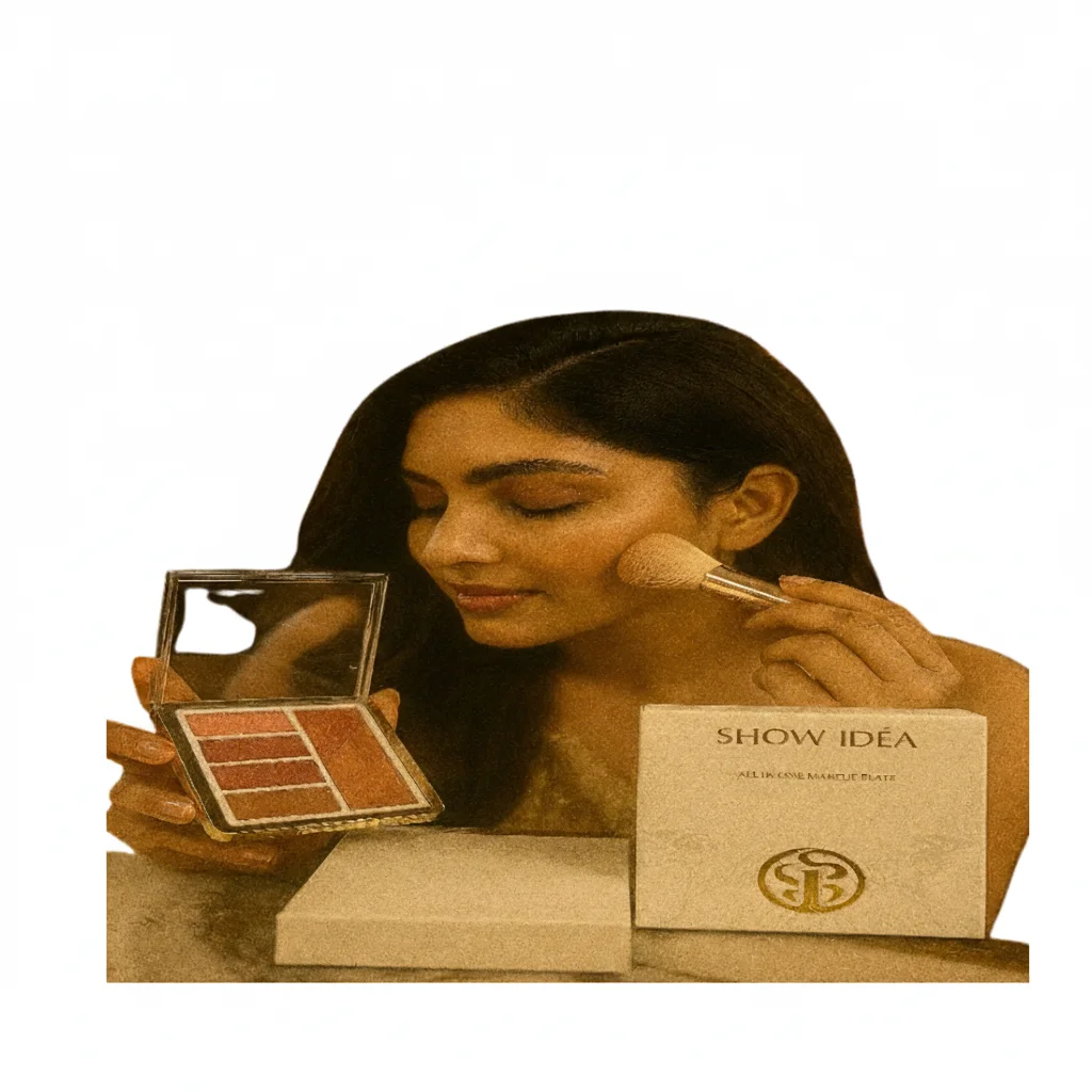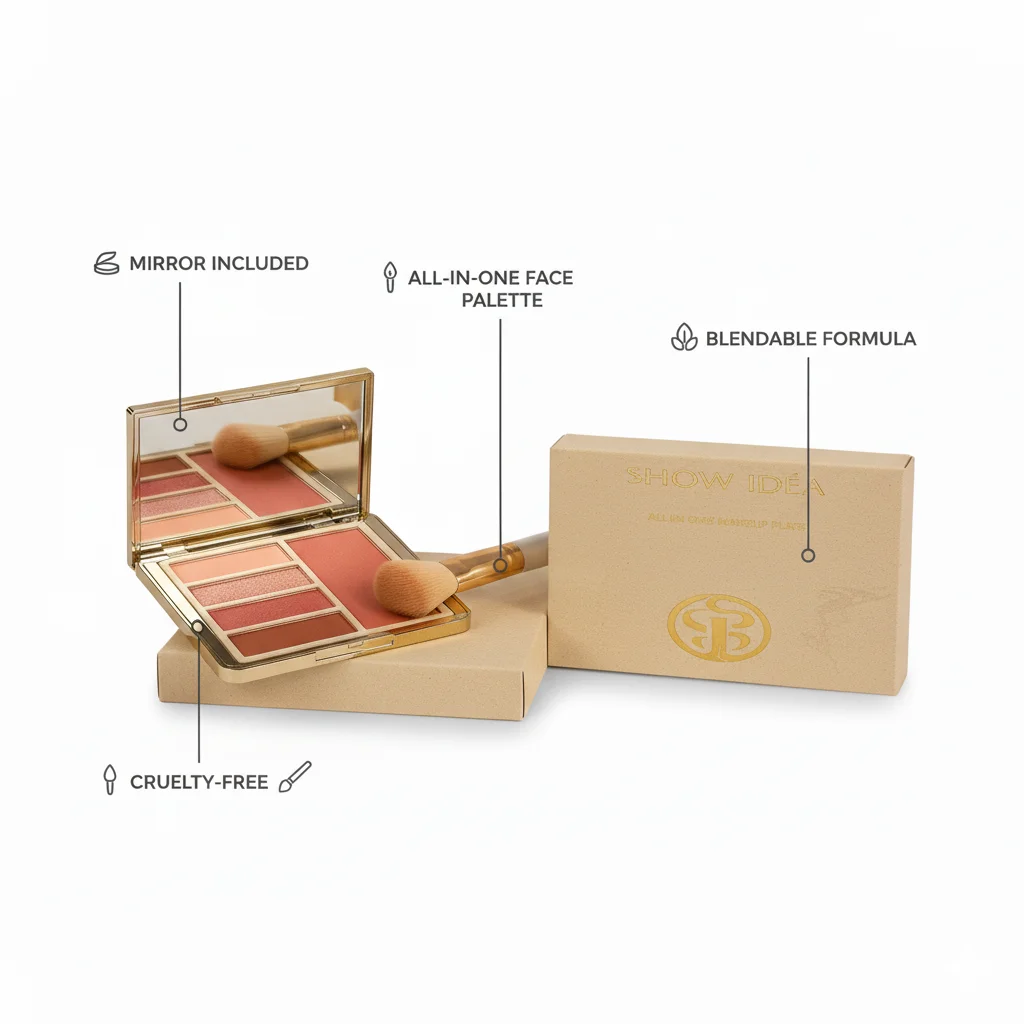 The SHOW IDEA All-In-One Makeup Plate is a versatile and convenient makeup palette designed for a complete full-face application. Housed in a chic, gold-trimmed compact, this palette is perfect for both everyday use and travel.