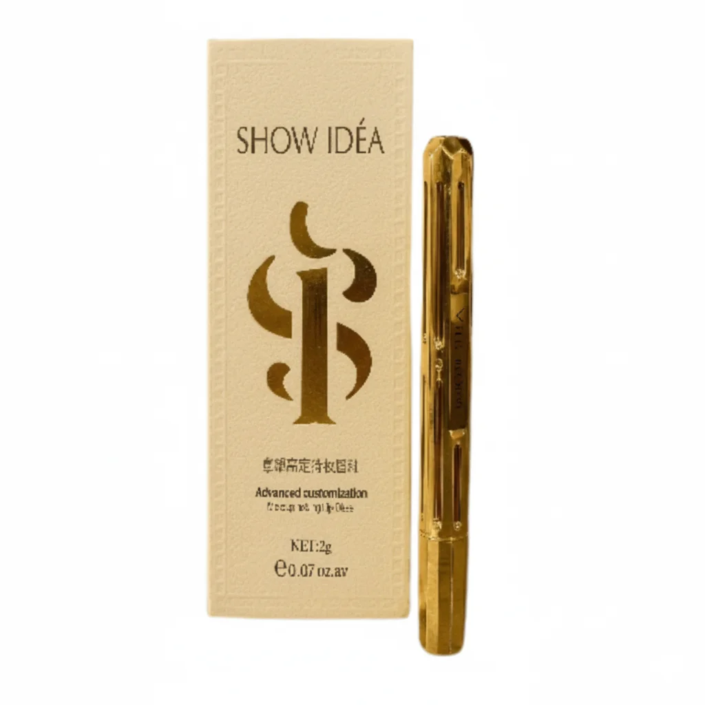 This SHOW IDÉA lipstick is designed for precise and long-lasting brow definition. The elegant gold packaging houses an ultra-fine, retractable pencil that allows for detailed application and the creation of natural-looking, hair-like strokes. It is a product of Guangzhou Butterfly Makeup Co., Ltd.
