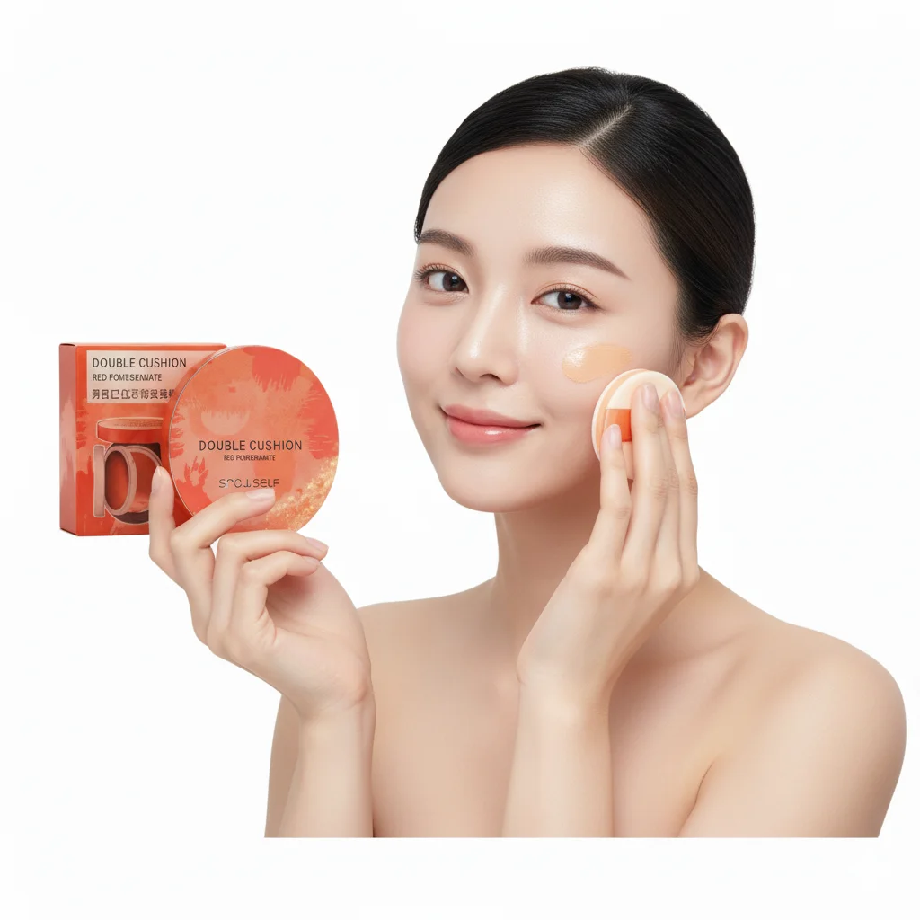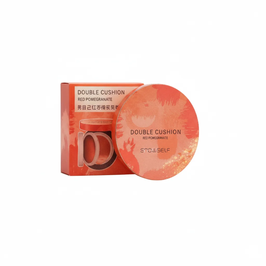 Full Description: This product appears to be a “double cushion” foundation or BB cream from the brand SNOWSELF. The packaging indicates it is formulated with red pomegranate, an ingredient often used in skincare for its antioxidant properties. The Chinese characters on the box suggest that this is a moisturizing cushion cream specifically targeted towards men, designed to even out skin tone and provide a flawless finish. Cushion foundations are popular for their lightweight feel and buildable coverage, offering a natural look while concealing imperfections.