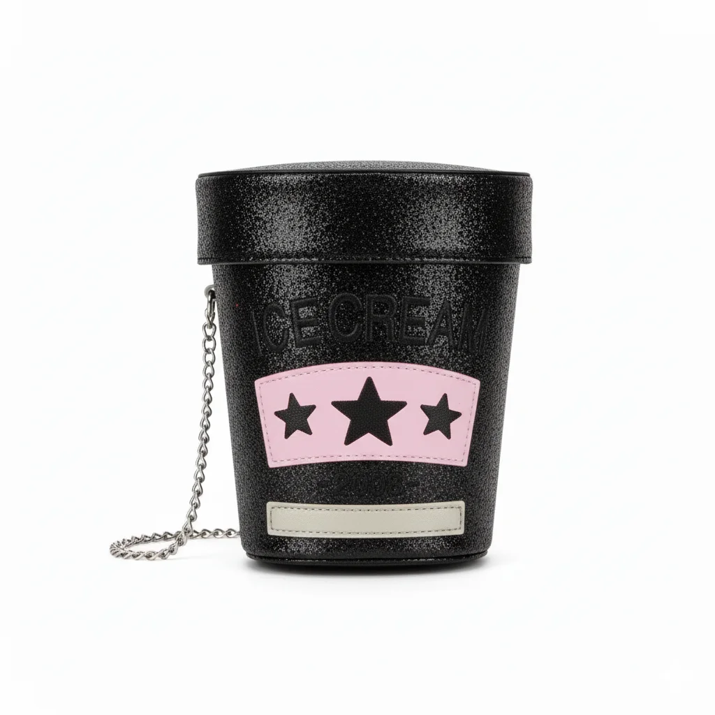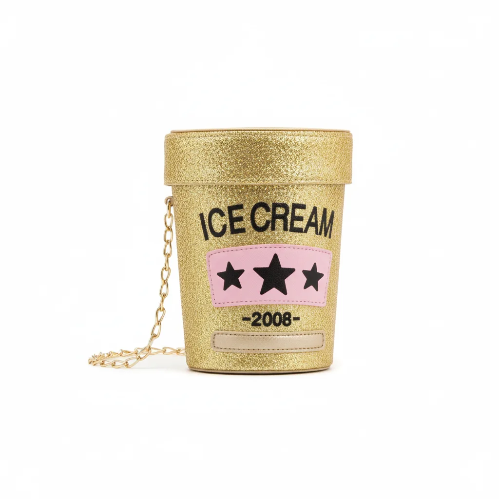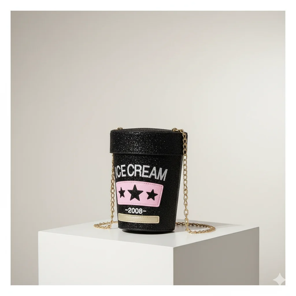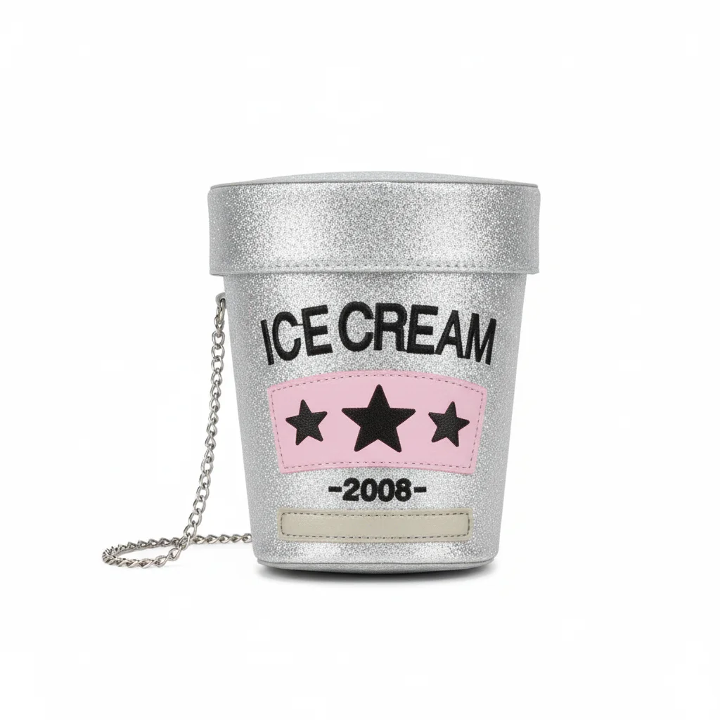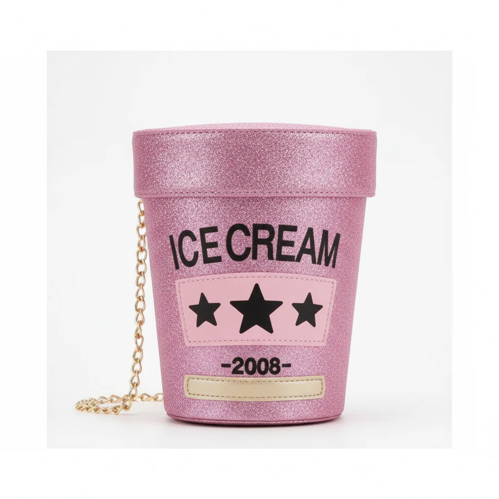 Sparkle “Ice Cream” Tub Novelty Crossbody Bag – Pink Glitter Edition