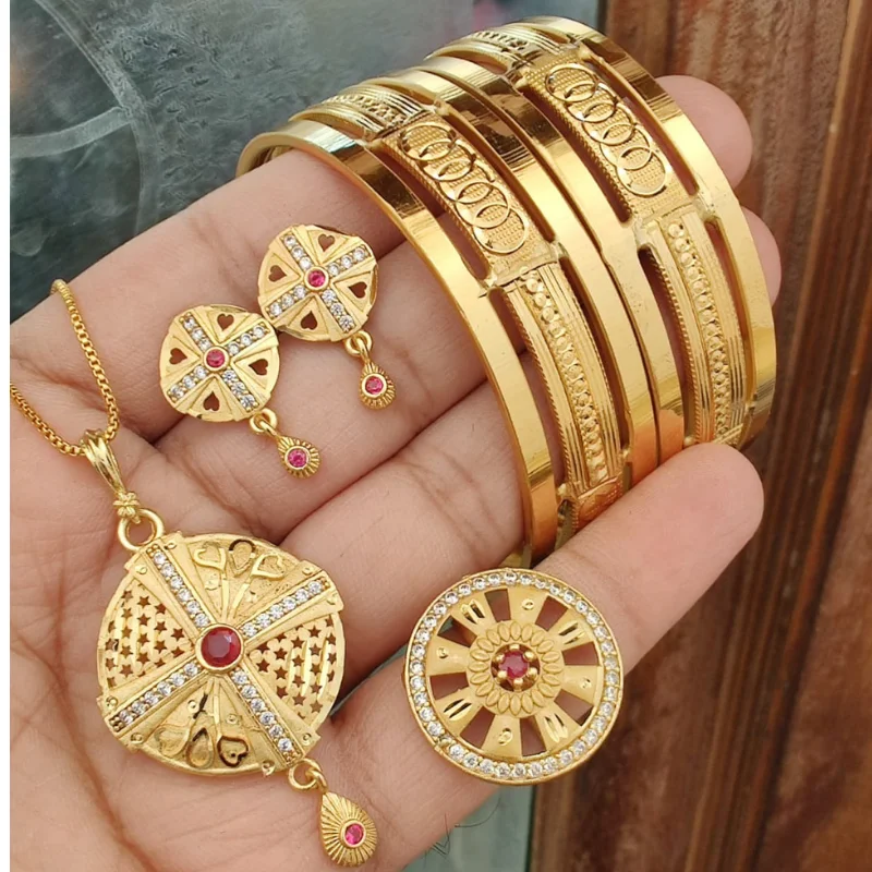 Complete 4-Piece Set: Includes 1 Pendant with Chain, 1 Pair of Stud Earrings, 1 Ring, and 4 Bangles.