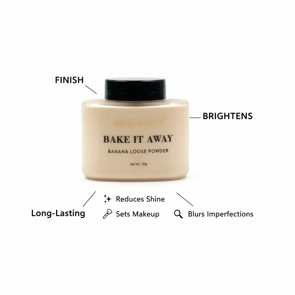 The Swiss Beauty Bake It Away Banana Loose Powder is designed for setting makeup, baking, and potentially color correcting. “Banana” powders are typically yellow-toned and are often used to brighten the complexion, set concealer, reduce redness, and absorb oil without looking cakey. The “Bake It Away” name explicitly indicates its use for the “baking” technique in makeup application.