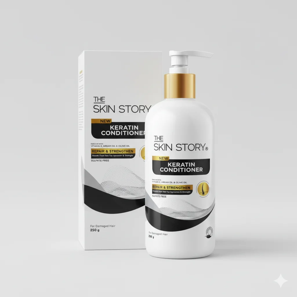 The Skin Story Keratin Conditioner is a deeply nourishing treatment designed to repair, strengthen, and revitalize damaged hair. Its advanced, sulfate-free formula provides both instant and long-lasting conditioning by replenishing the hair’s natural keratin, a protein that is essential for strength and structure. This helps to fortify the hair, preventing breakage and reducing the risk of hair fall. Enriched with a powerful blend of Argan oil, olive oil, and Vitamin E, the conditioner works to hydrate the scalp and hair, tame frizz, and leave your locks enviably glossy. The rich, creamy formula locks in moisture to rehydrate dry, brittle tresses, making it ideal for hair that has been damaged by heat styling or chemical treatments. It effectively detangles, smoothens, and softens hair with every wash, making it more manageable and restoring its natural shine.