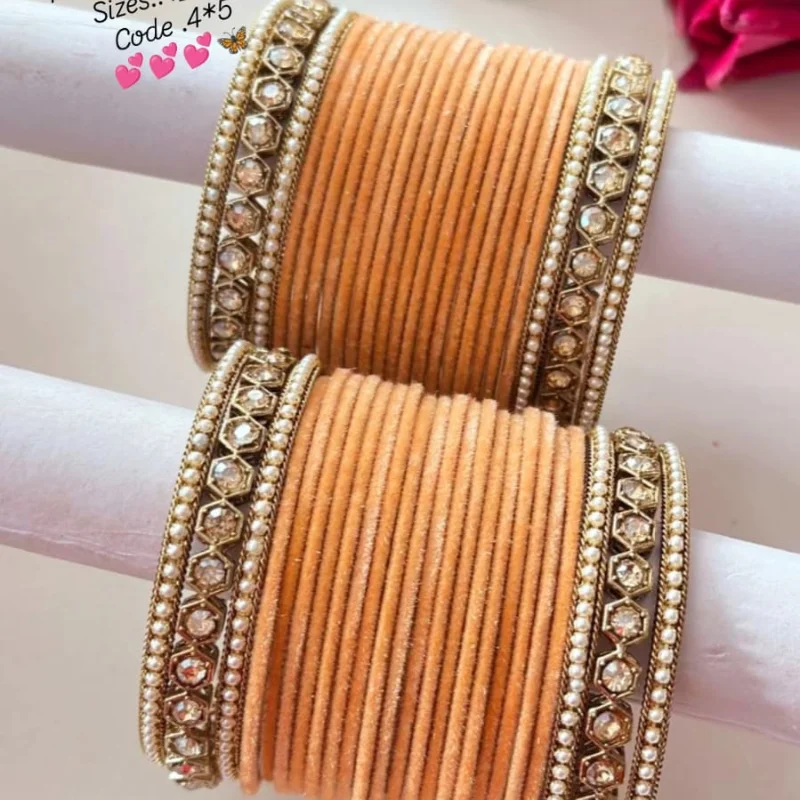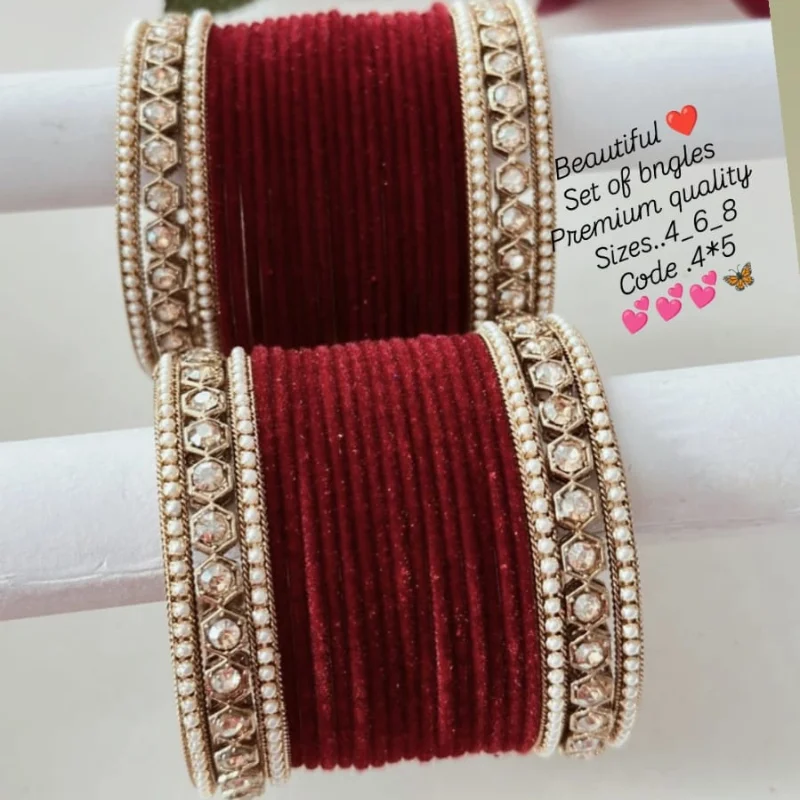 Velvet & Stone-Studded Bangle Set | Traditional Bridal & Party Wear Chuda with Pearl Accents