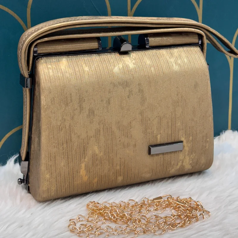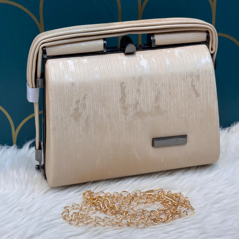 Vintage-Style Frame Handbag with Detachable Gold Chain