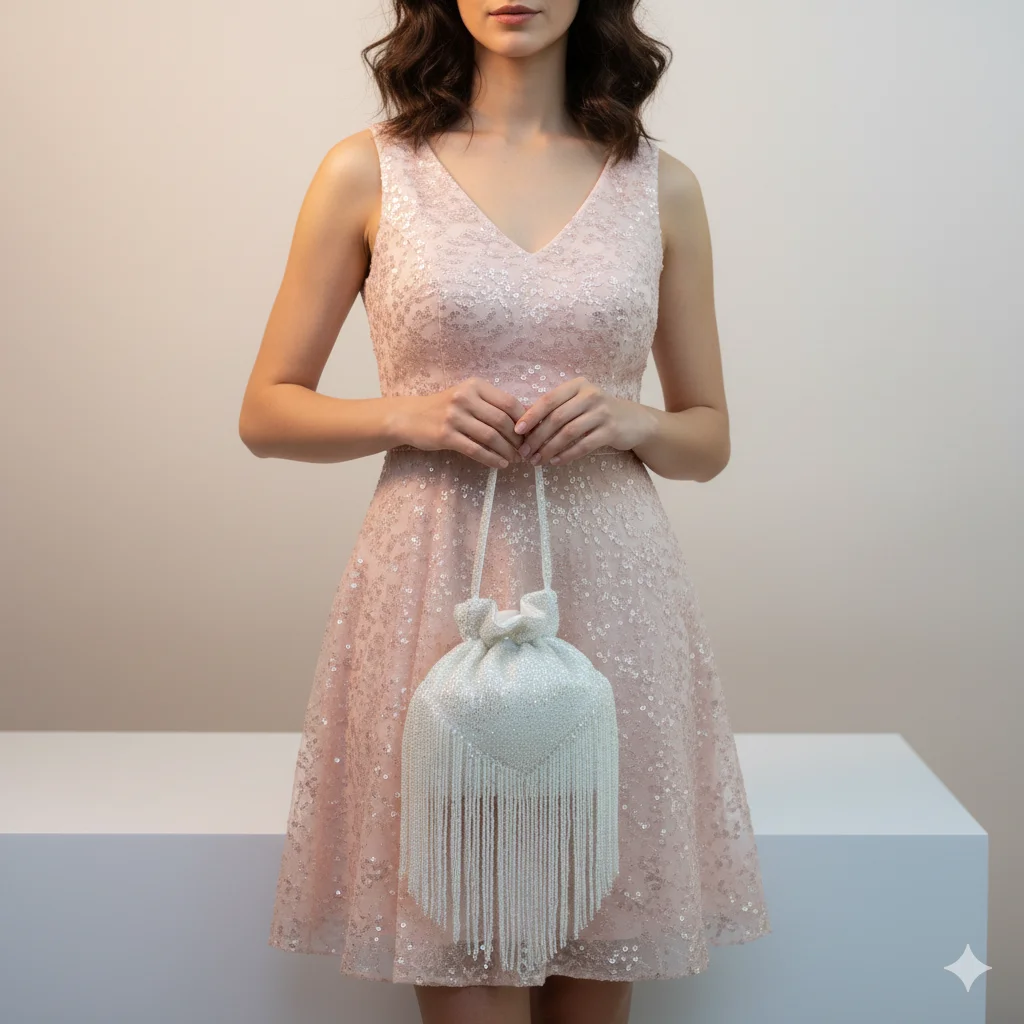 Beaded Strap: A delicate, matching beaded strap for over-the-shoulder or hand-carrying.